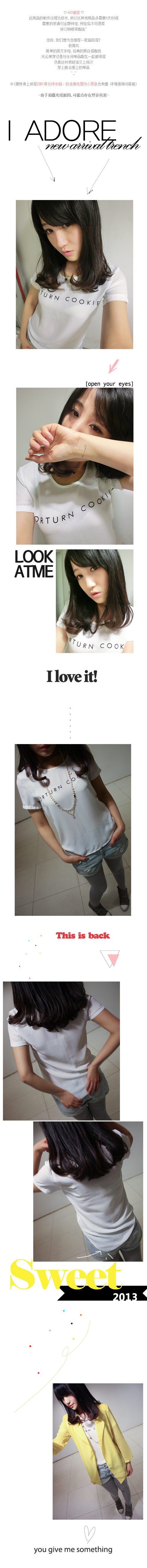 韩国品牌女装代销 11am街拍风破洞字母长款T恤(3色)