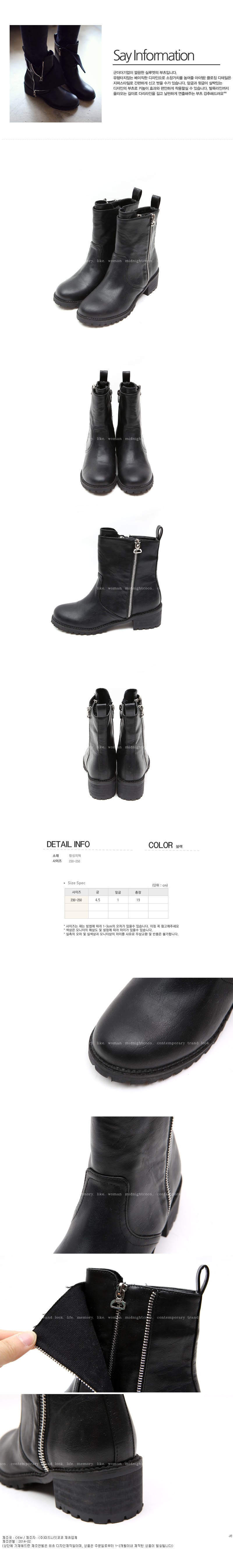 韩国正品代购 24coco街拍风拉链装饰黑色短靴