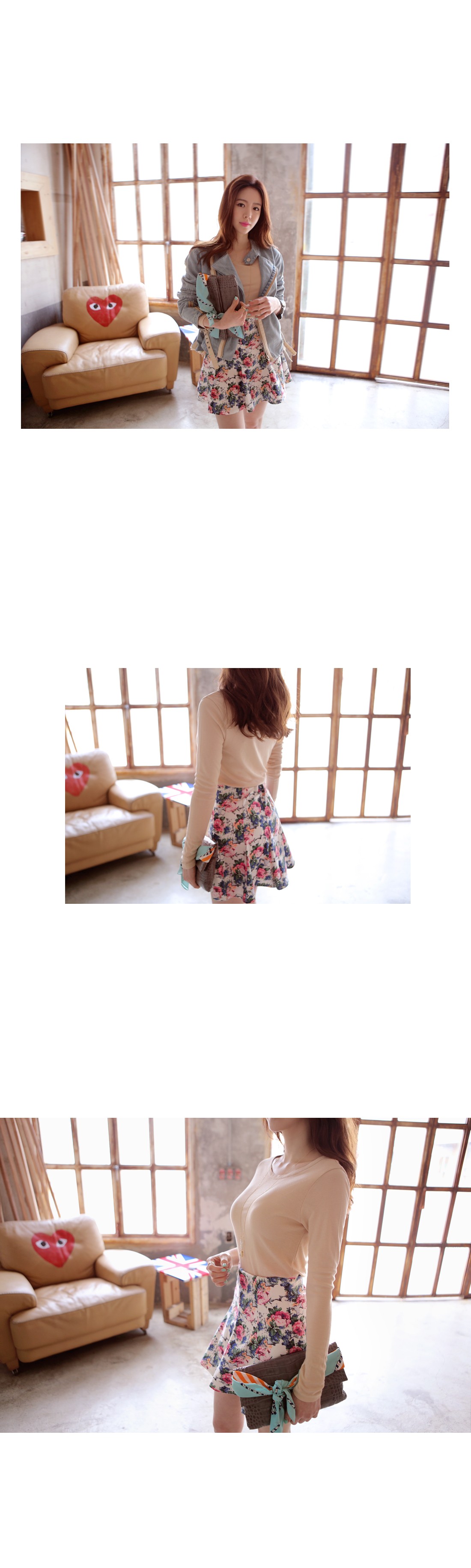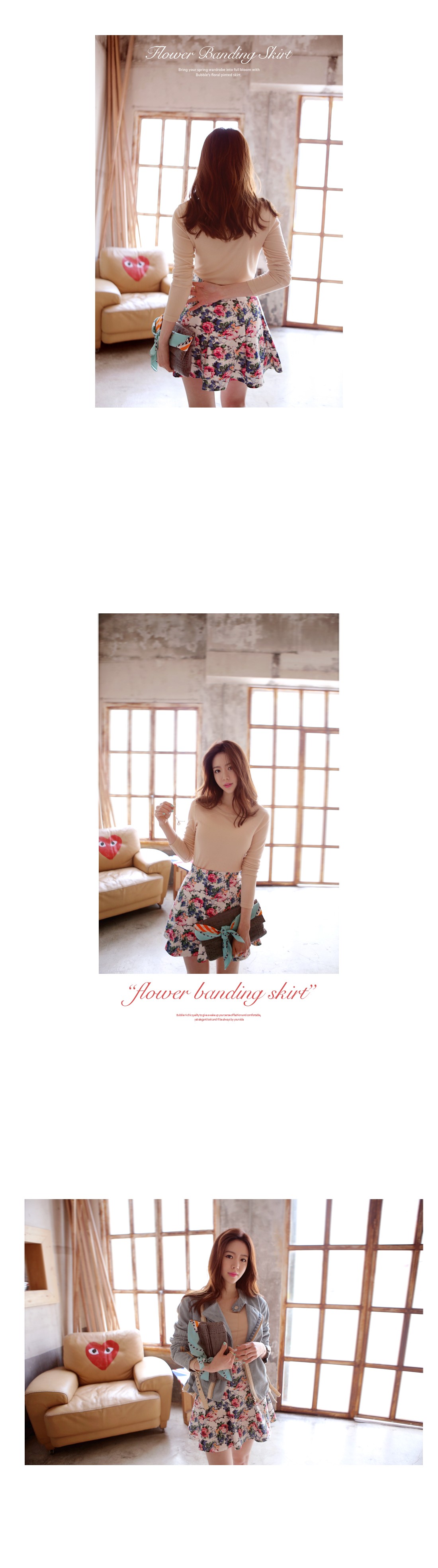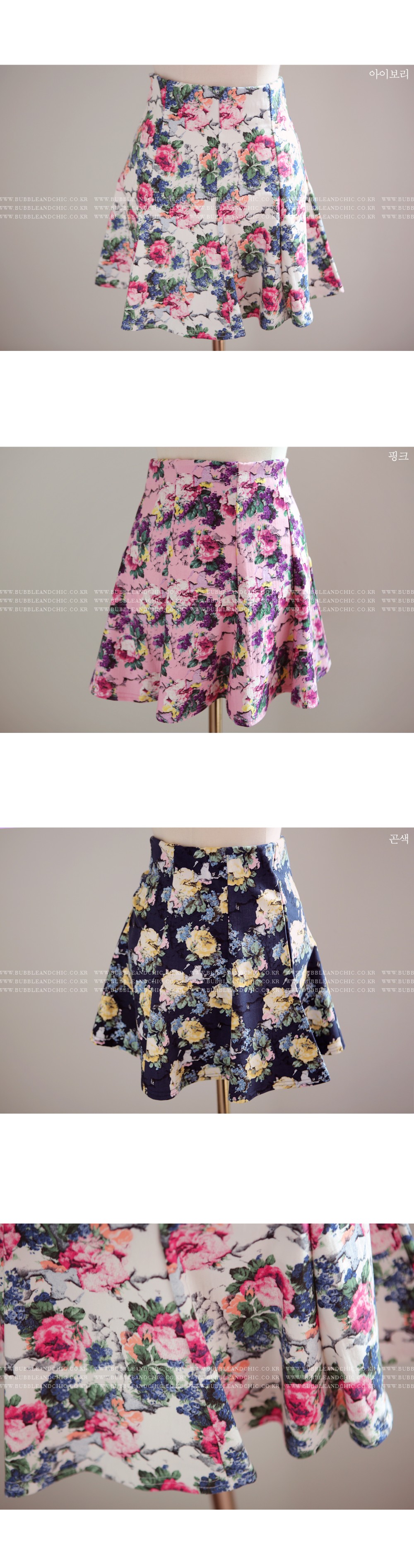 韩国代购正品 bubbleandchic高腰大碎花短裙(3色)