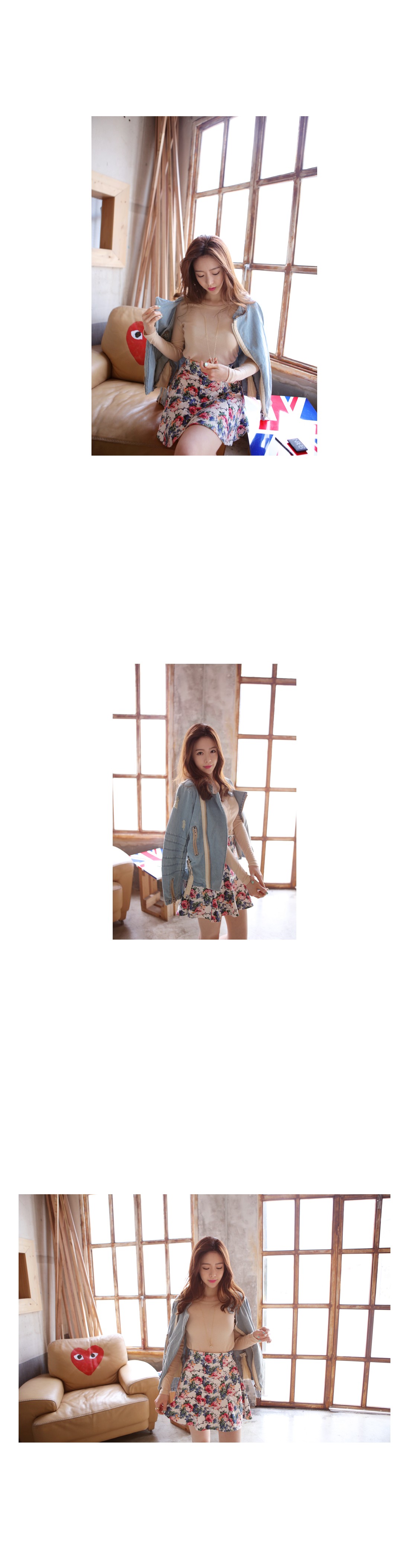 韩国女装网店代理 11am撞色气质大花包臀短裙(2色)