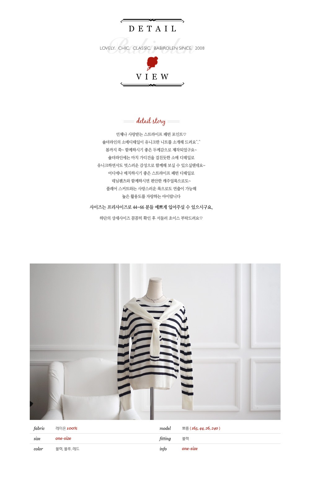 韩国服装代理 babirolen海军领假两件条纹针织衫(3色)