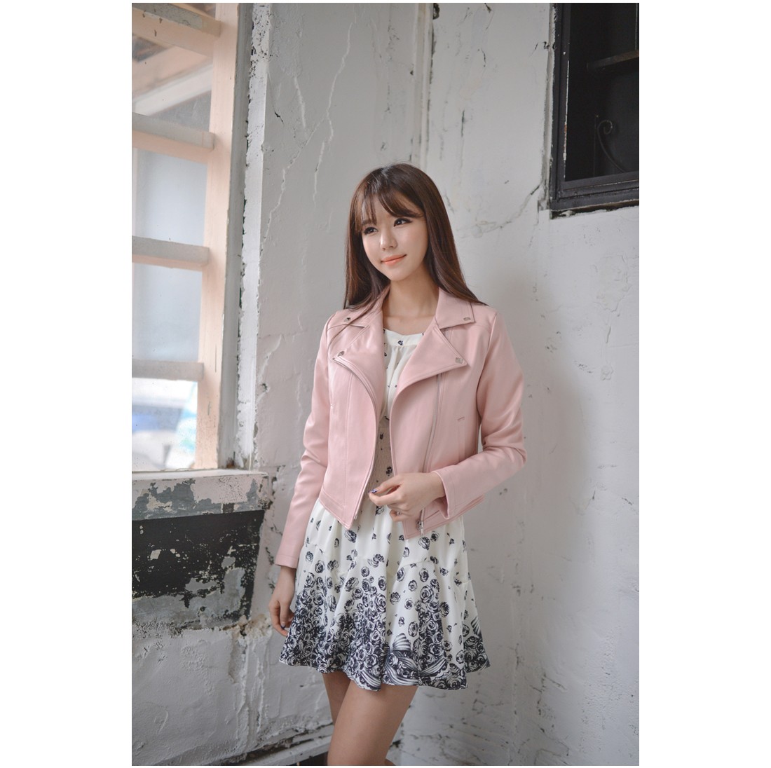 韩国品牌女装代 cherrykoko经典款黑色机车皮夹克