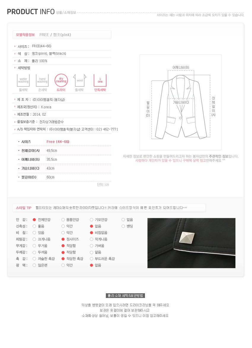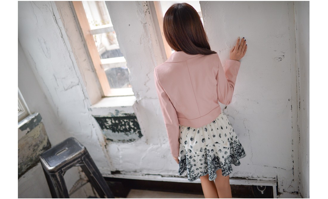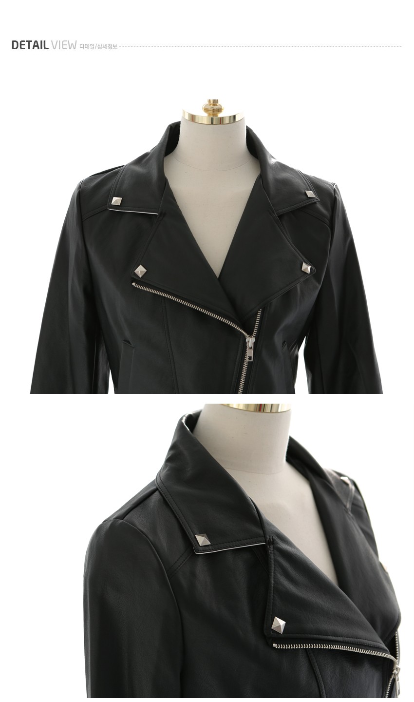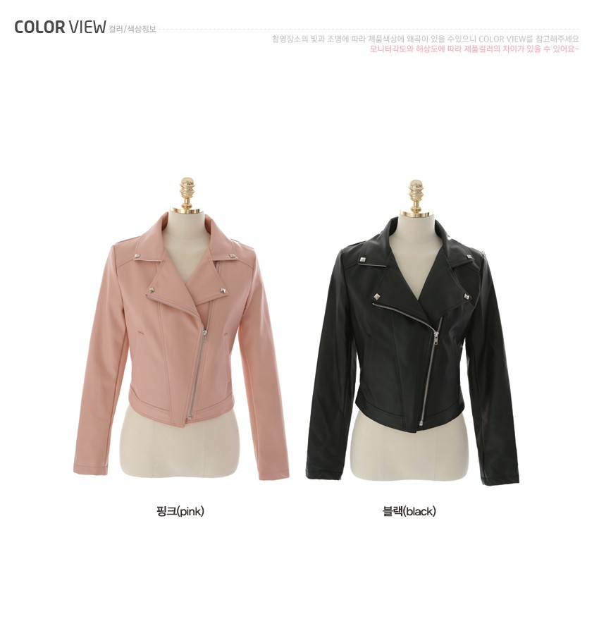 韩国女装批发 bongjashop街拍铆钉帅气仿皮衣短外套(2色)