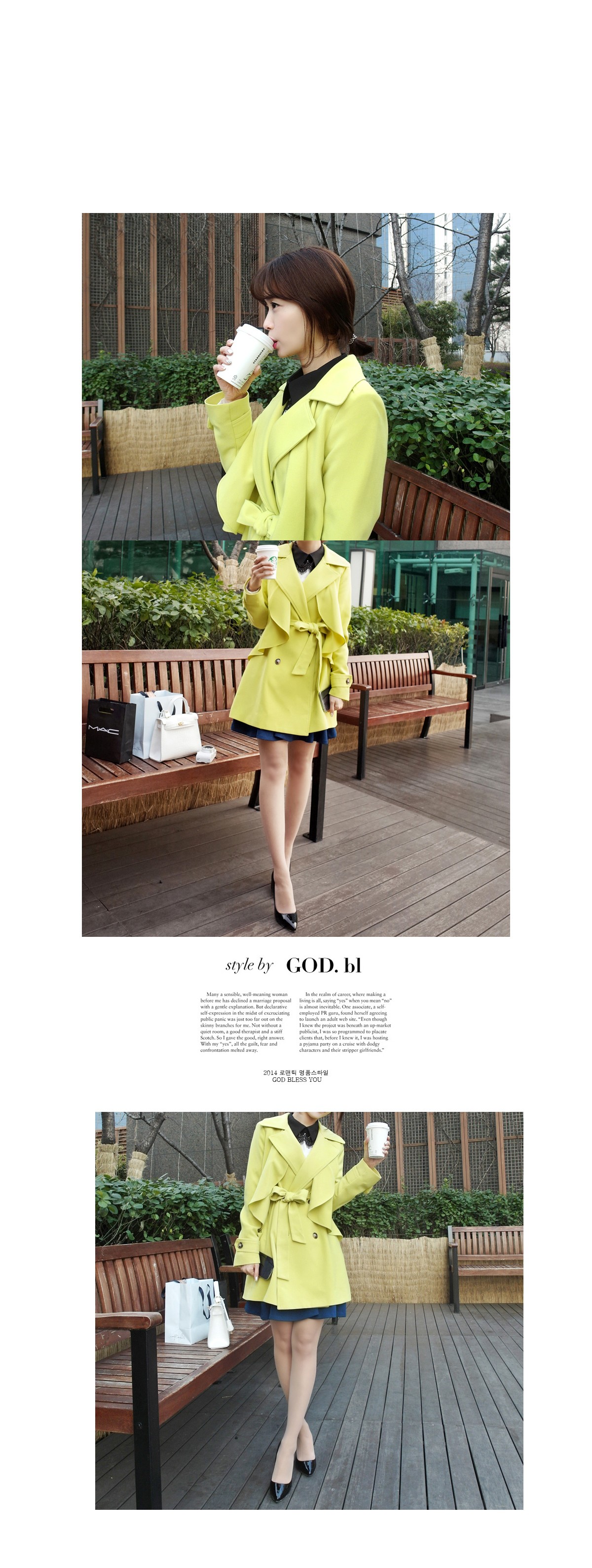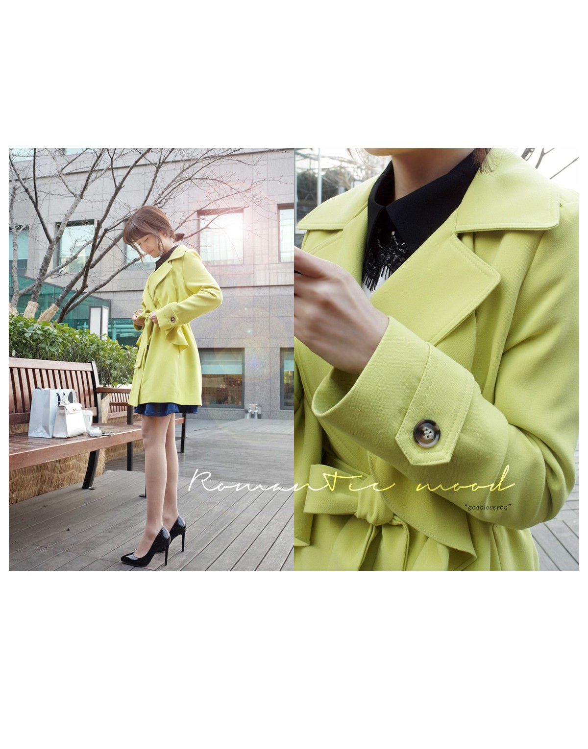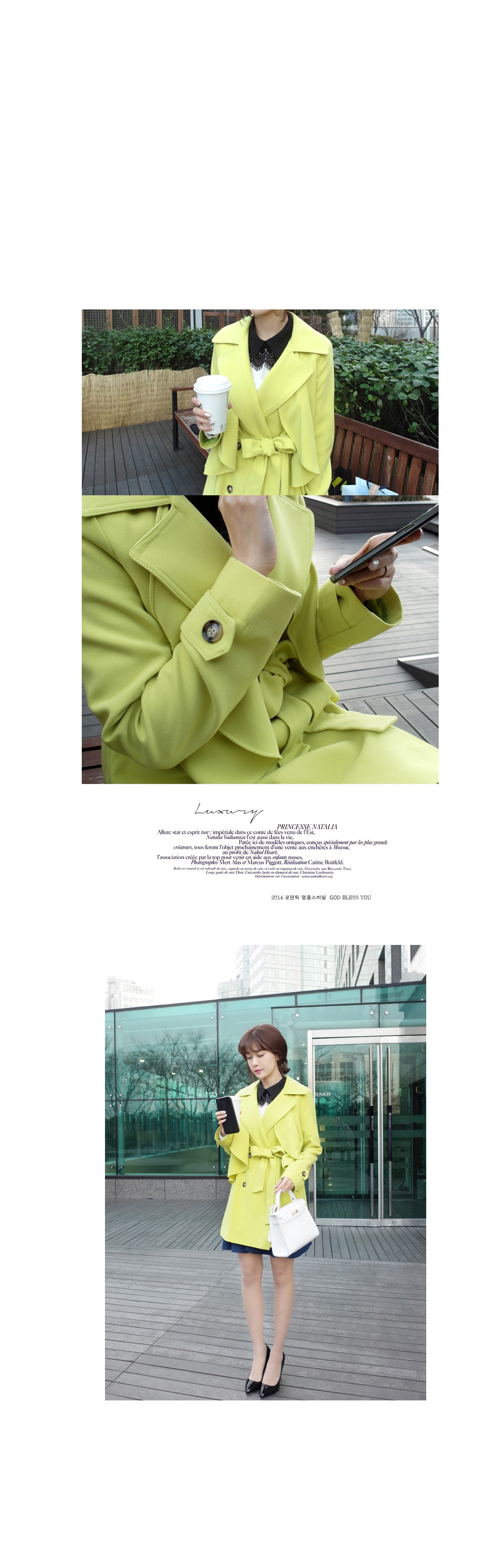 韩国服装代购 naning9气质蝴蝶结腰带长款风衣(多穿法)