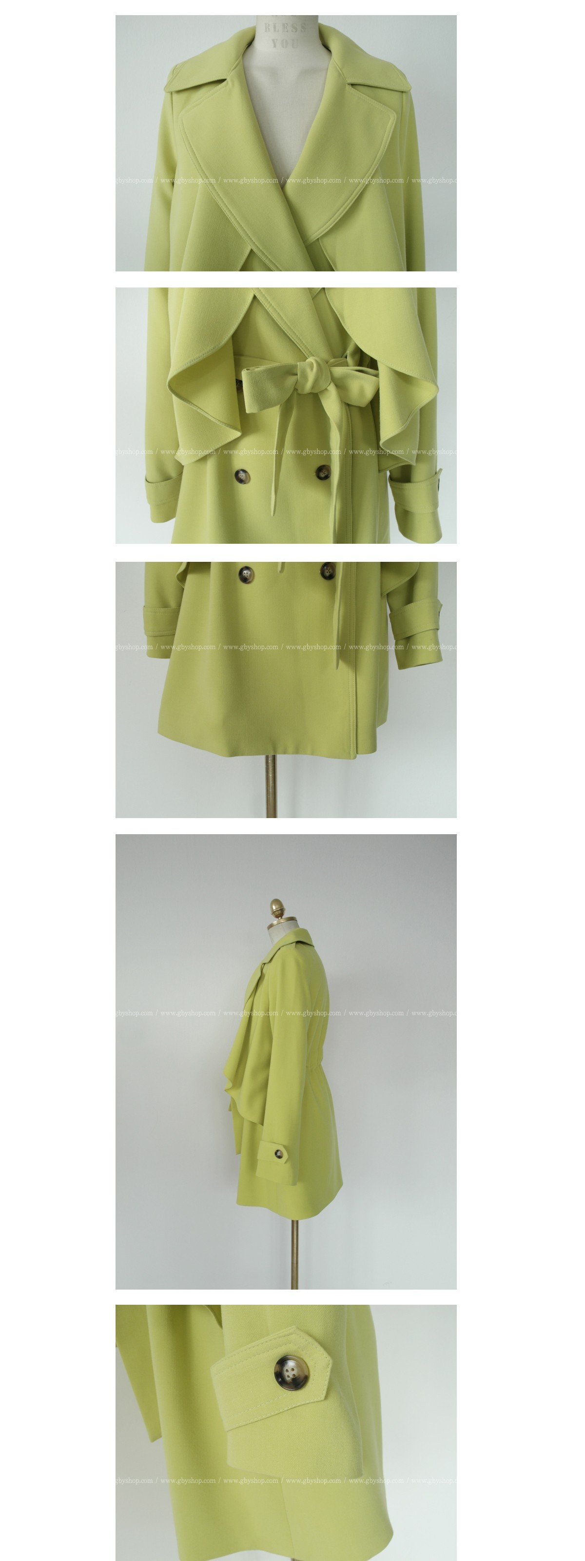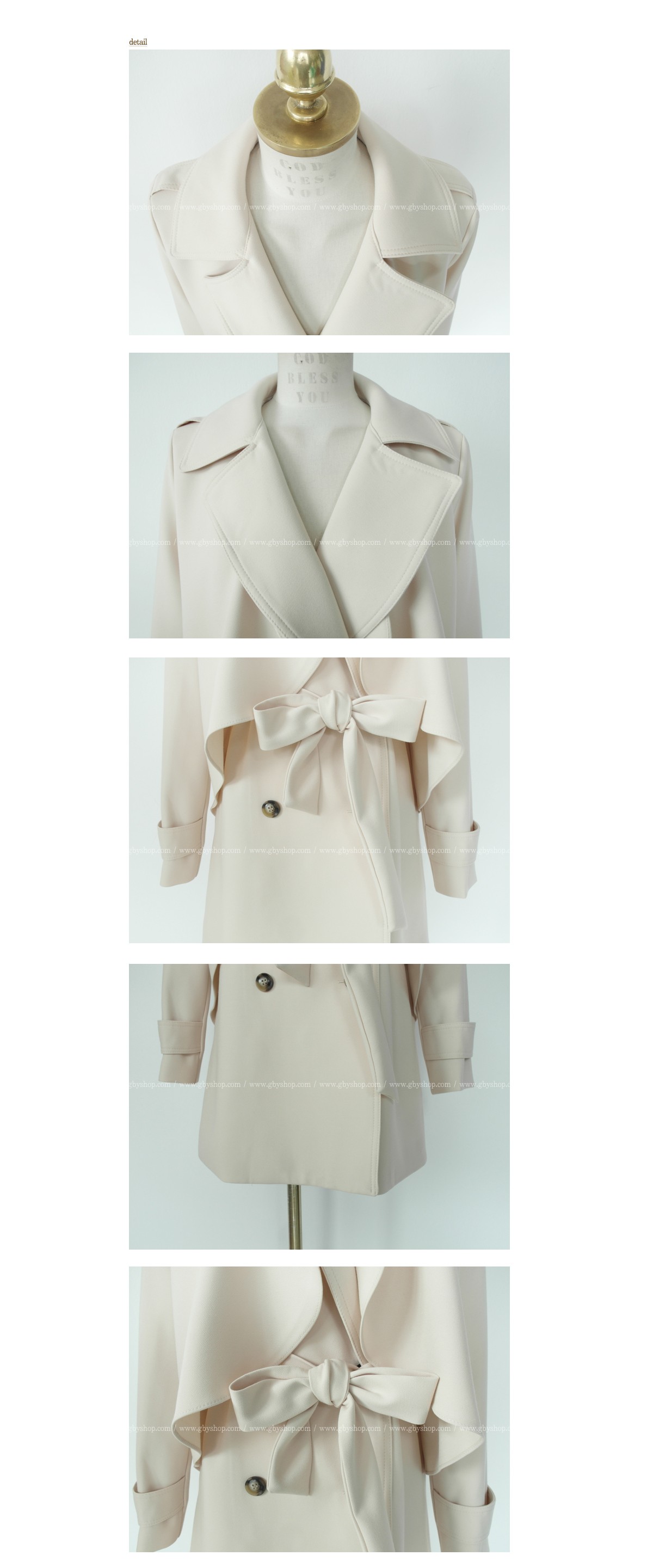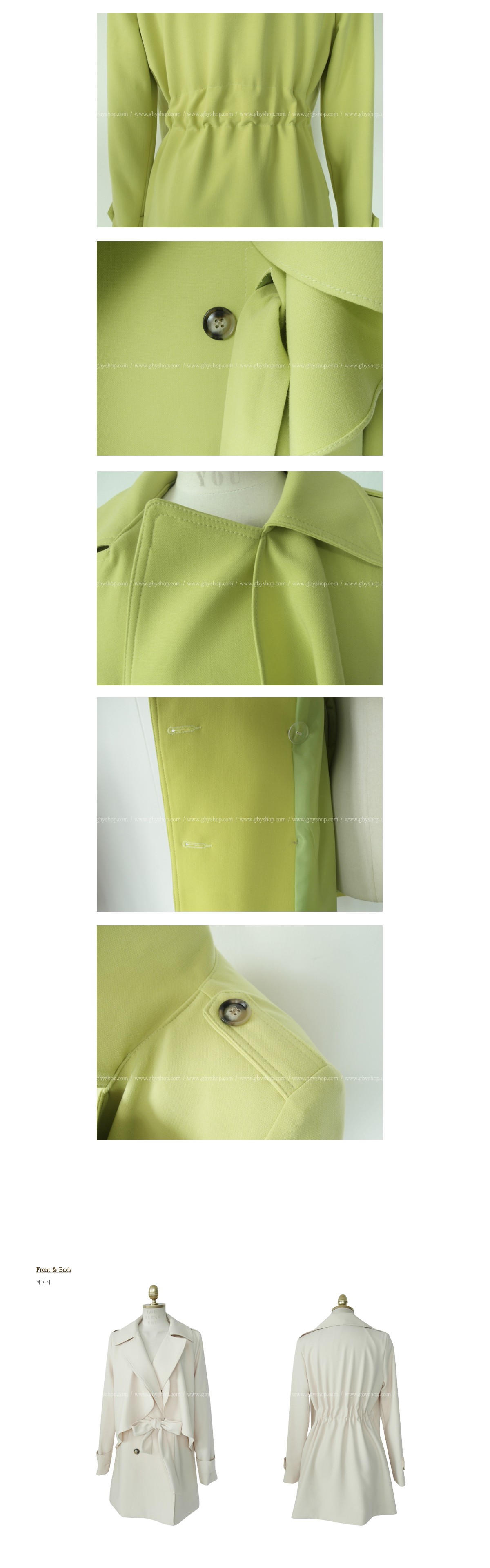 韩国女装正品代理 gbyshop气质纯色蝴蝶结修身风衣(2色)