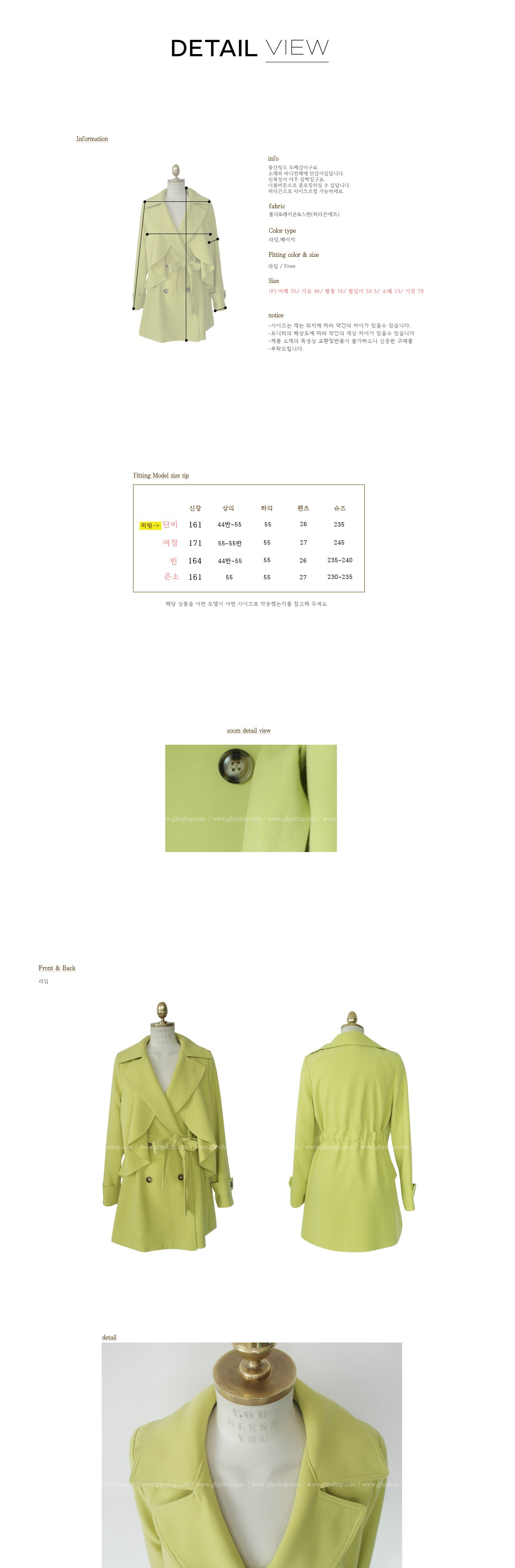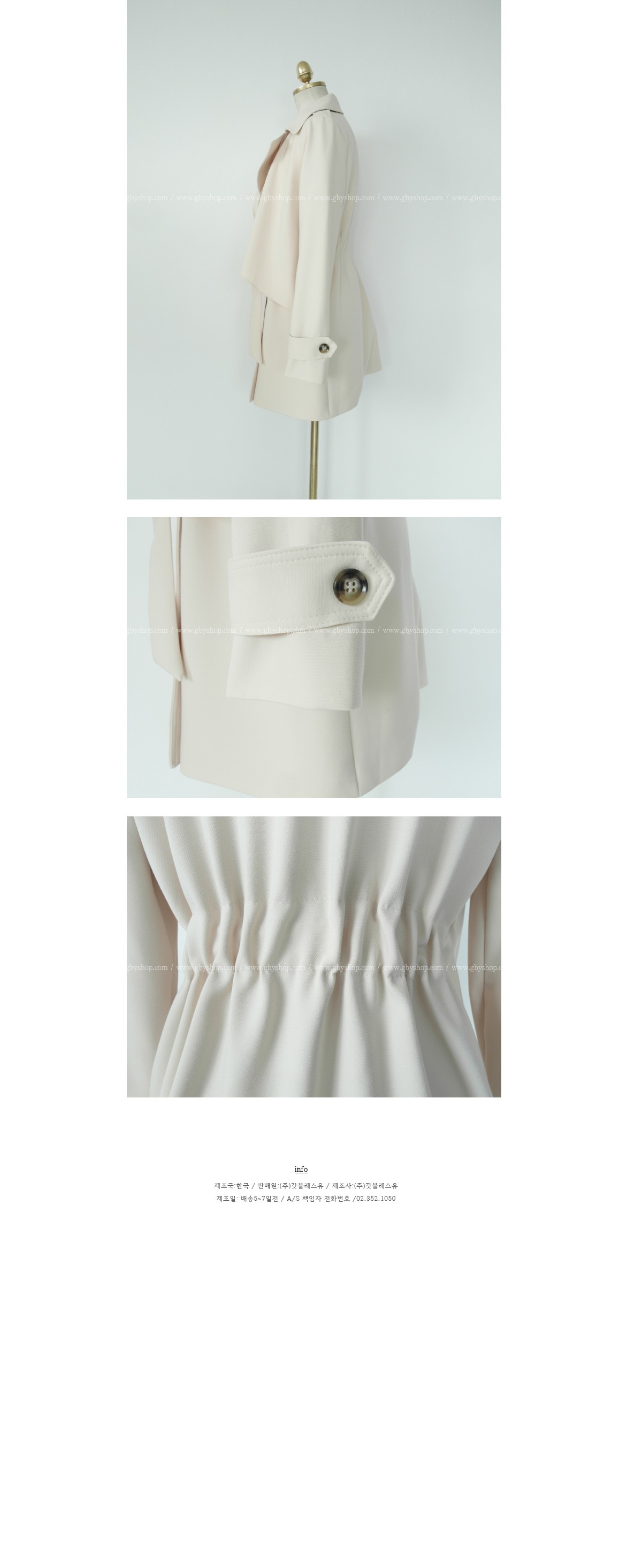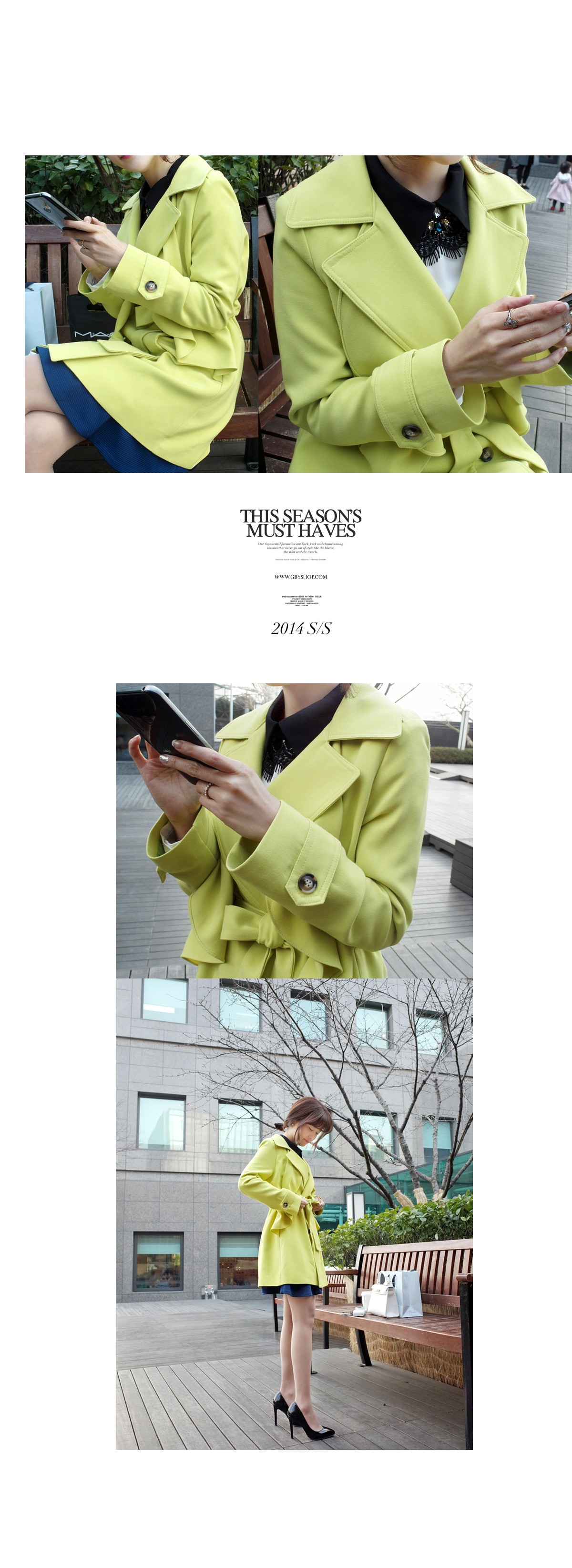 韩国女装正品代理 gbyshop气质纯色蝴蝶结修身风衣(2色)