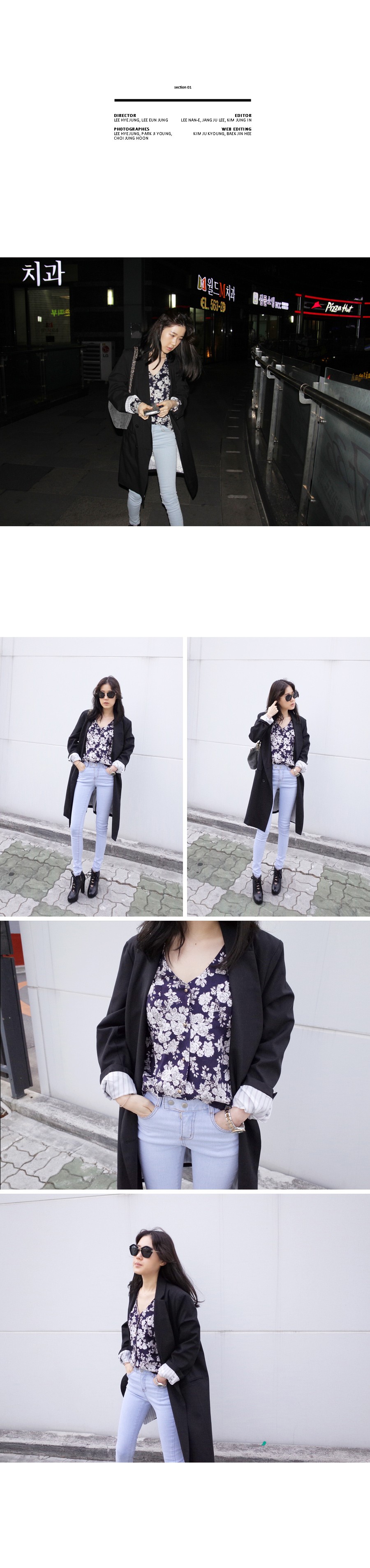韩国女装代销 naning9街拍经典黑白细格纹长款衬衫