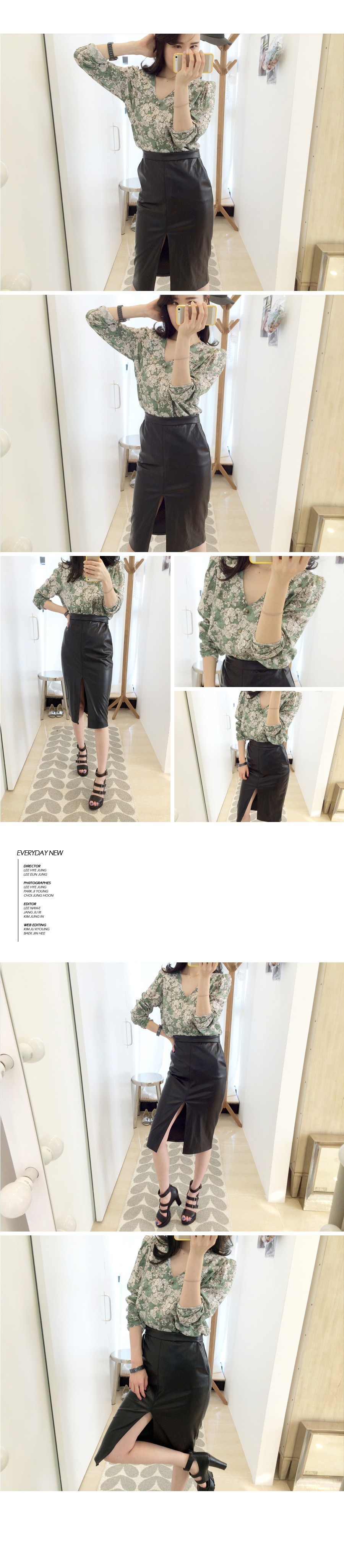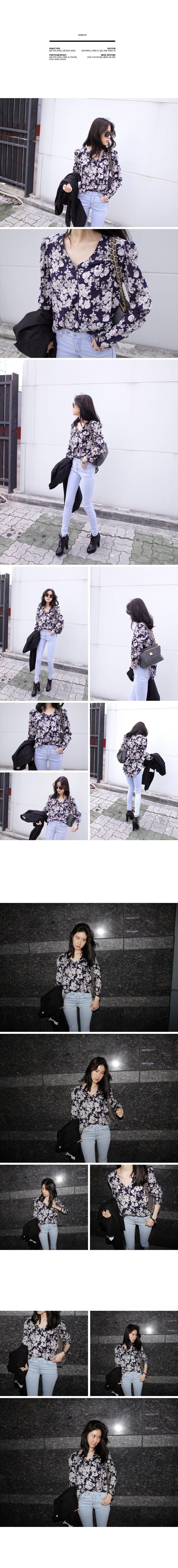 韩国服装网店代销 suvin气质花朵薄透衬衫(2色)