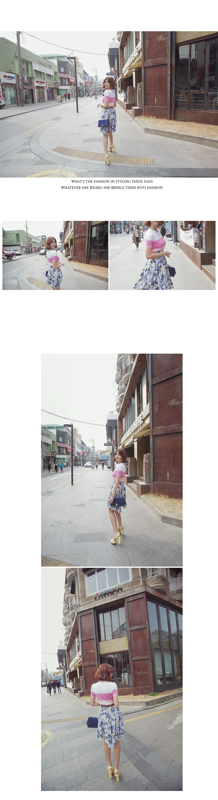 韩国正品代购 naning9撞色花纹高腰半身中裙