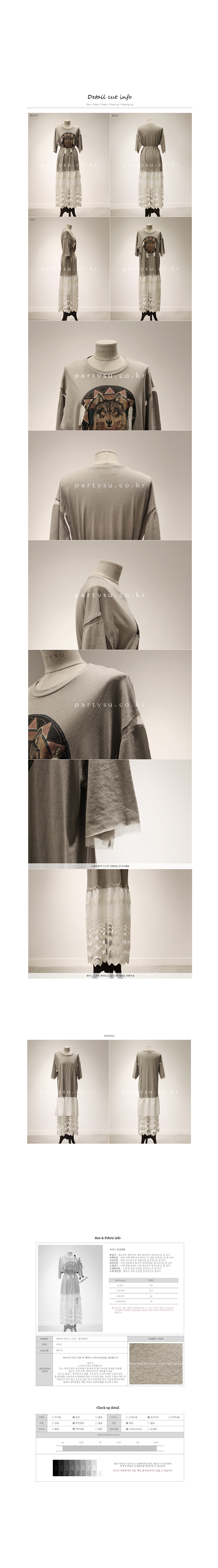 韩国服饰批发 partysu街拍印花拼接蕾丝假两件连衣长裙