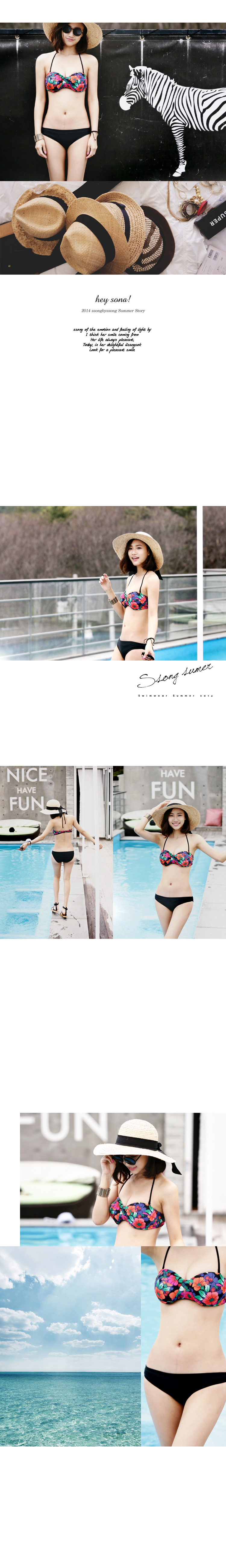 韩国女装春夏爆款 stylenanda民俗碎花系带比基尼