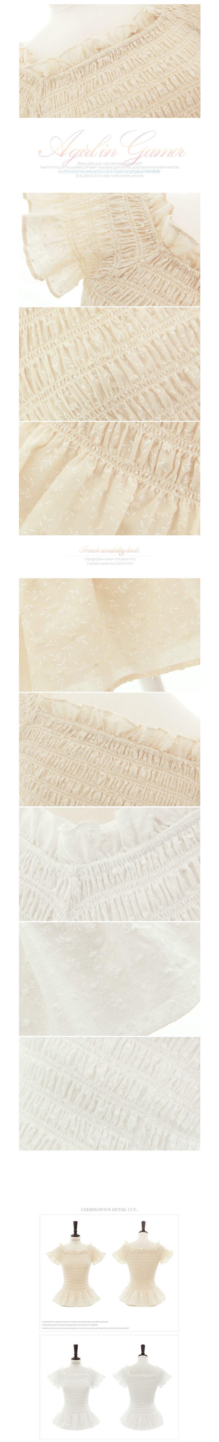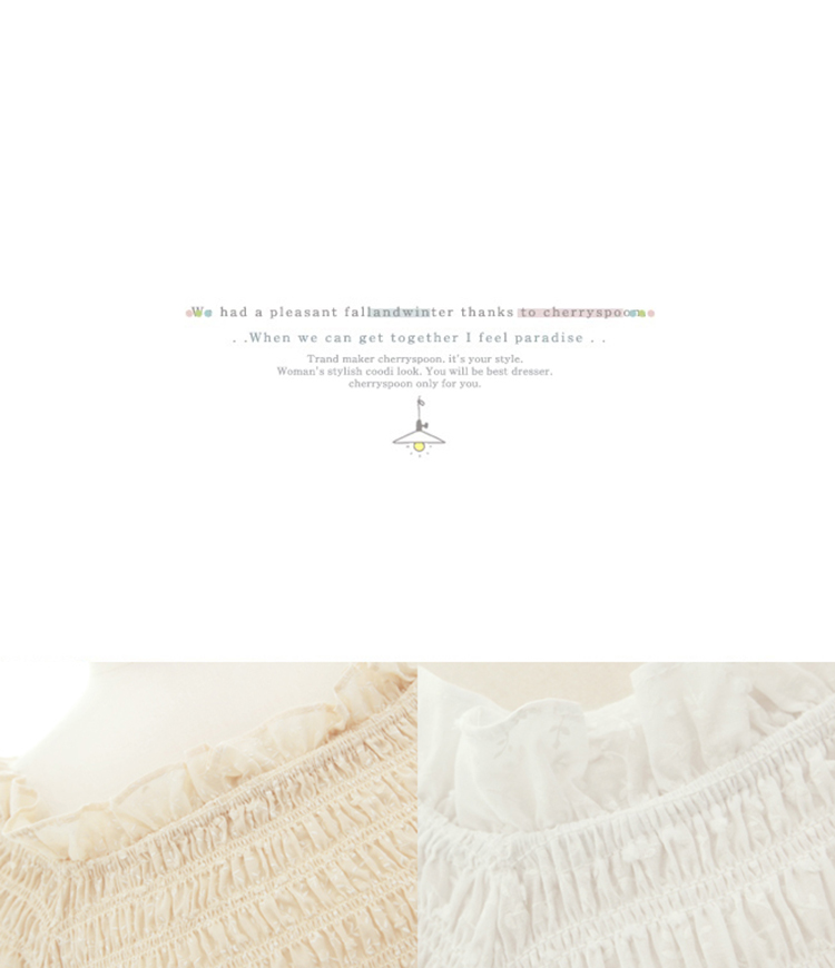 韩国女装春夏爆款 cherry-spoon露肩木耳边裙摆式衬衫(2色)