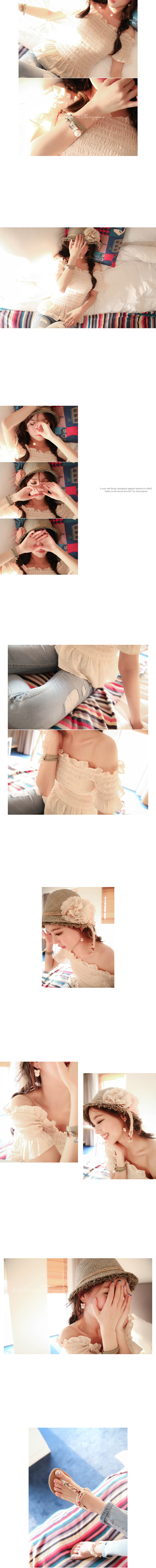 韩国服饰网 babirolen镂空花边荷叶领吊带露肩娃娃衬衫(2色)
