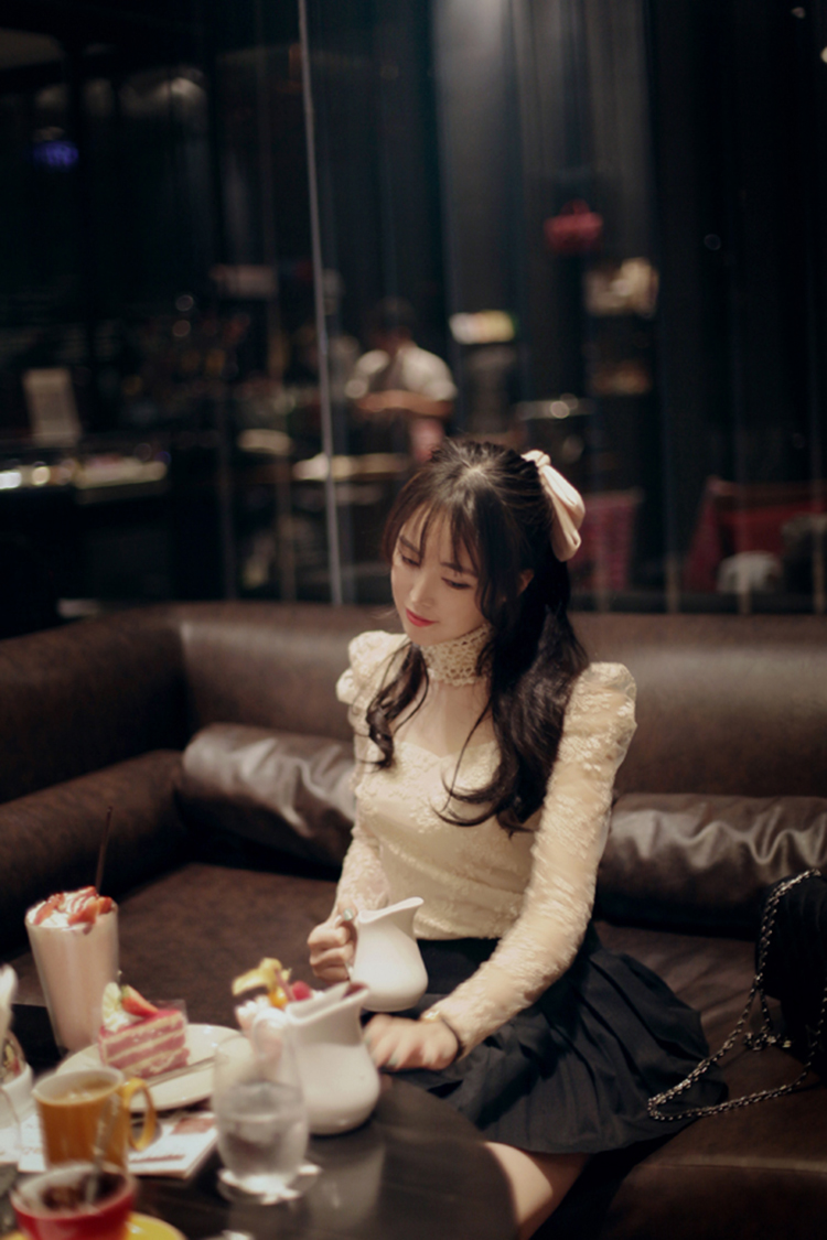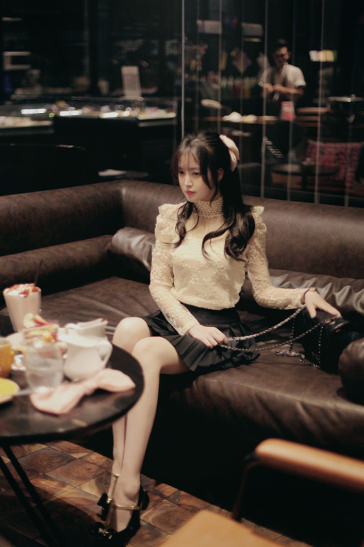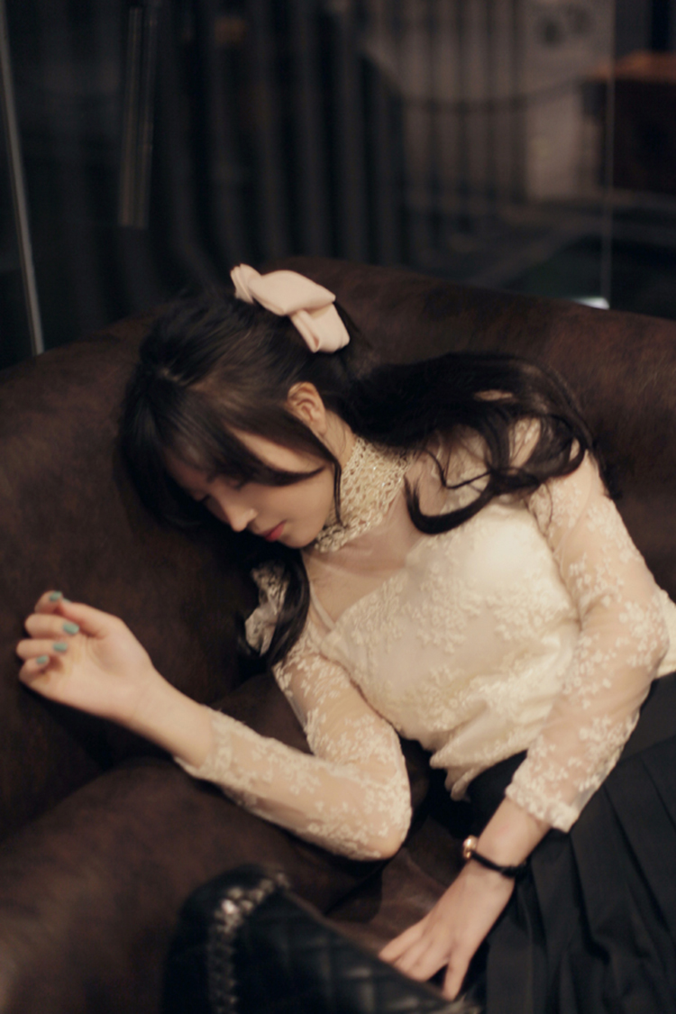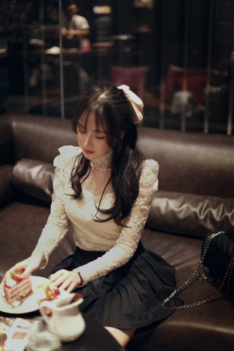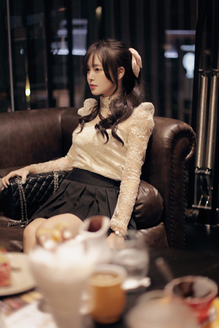 韩国女装代销 lovestar9浪漫波点透肤蕾丝衫(2色)