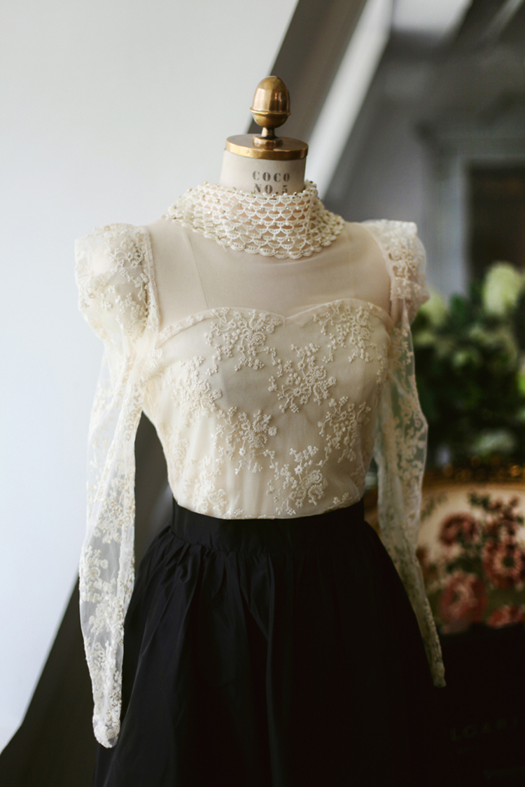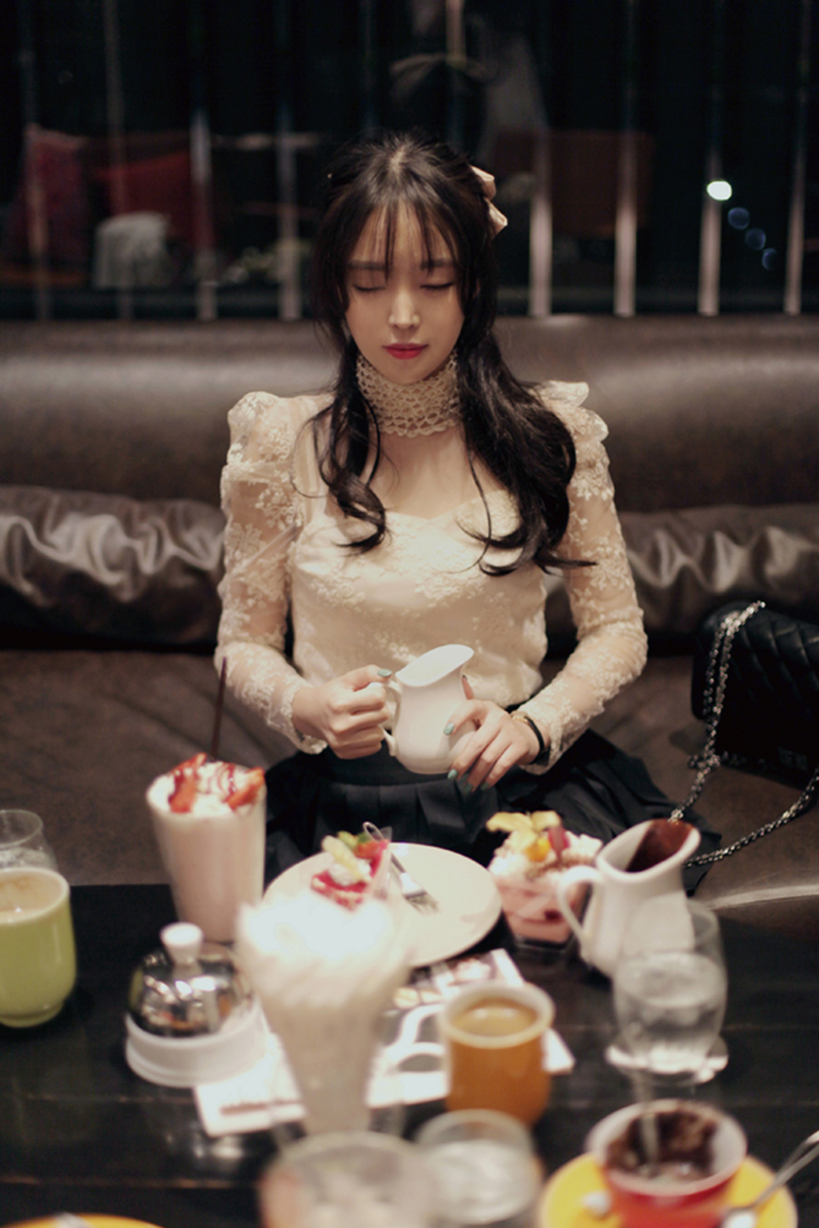 韩国女装代理 bongjashop浪漫碎花数字蕾丝衫