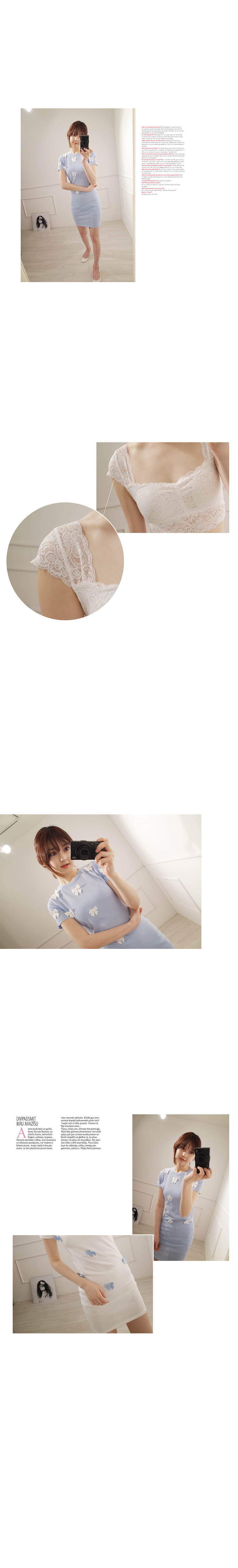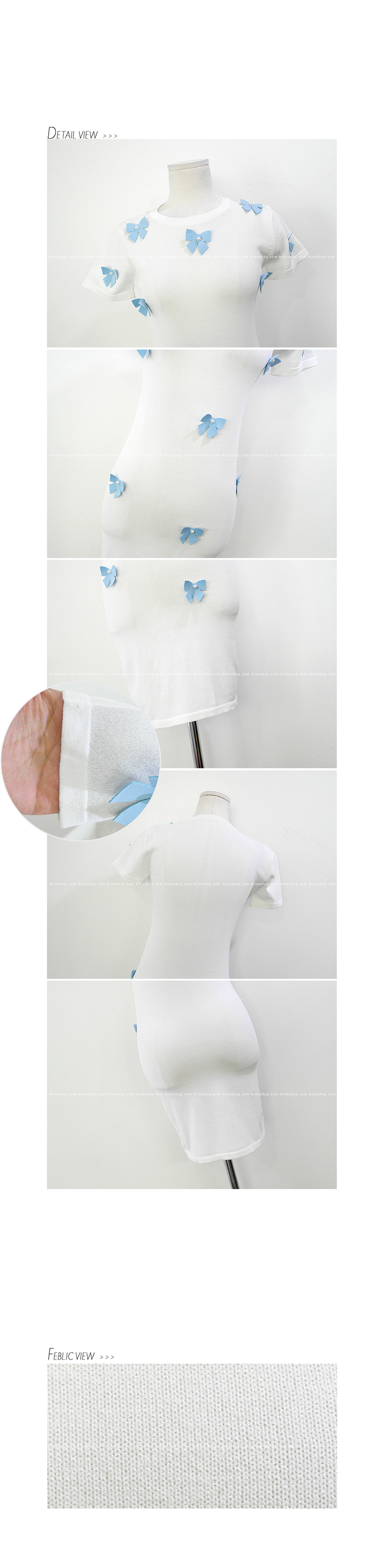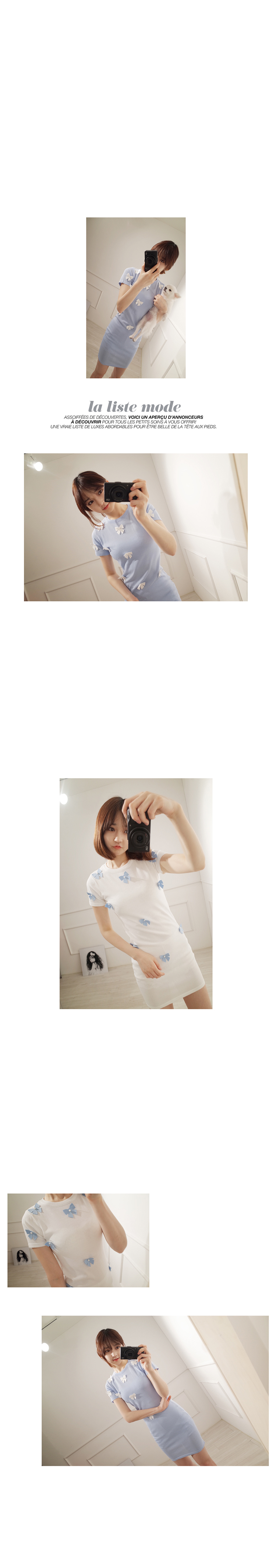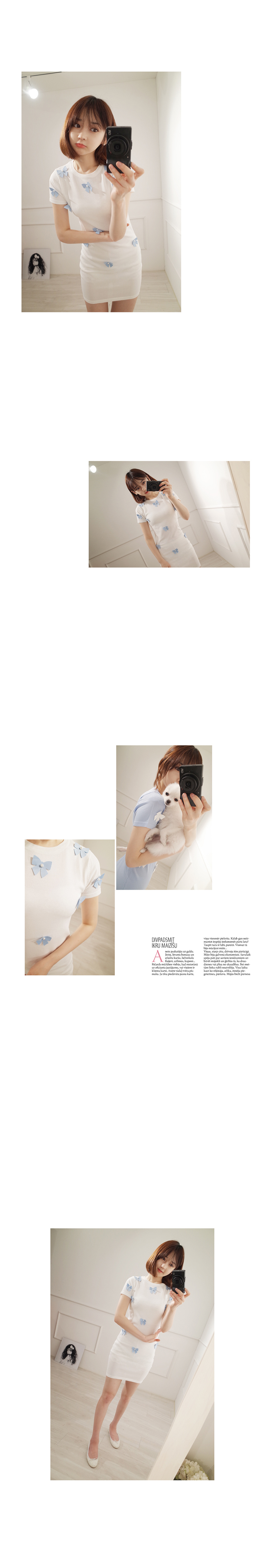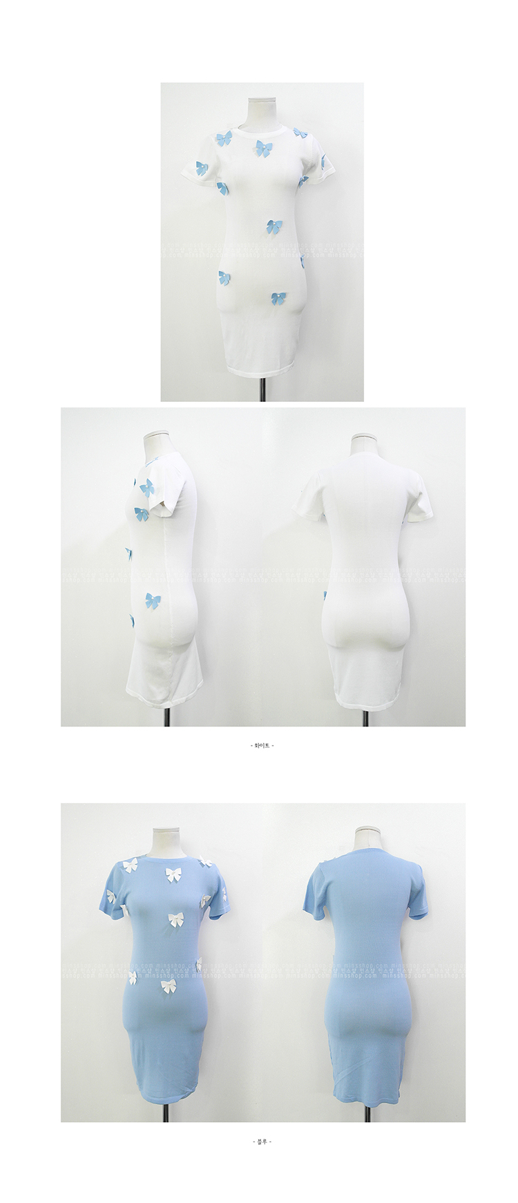 韩国女装批发 minsshop珍珠蝴蝶结修身连衣裙(2色)
