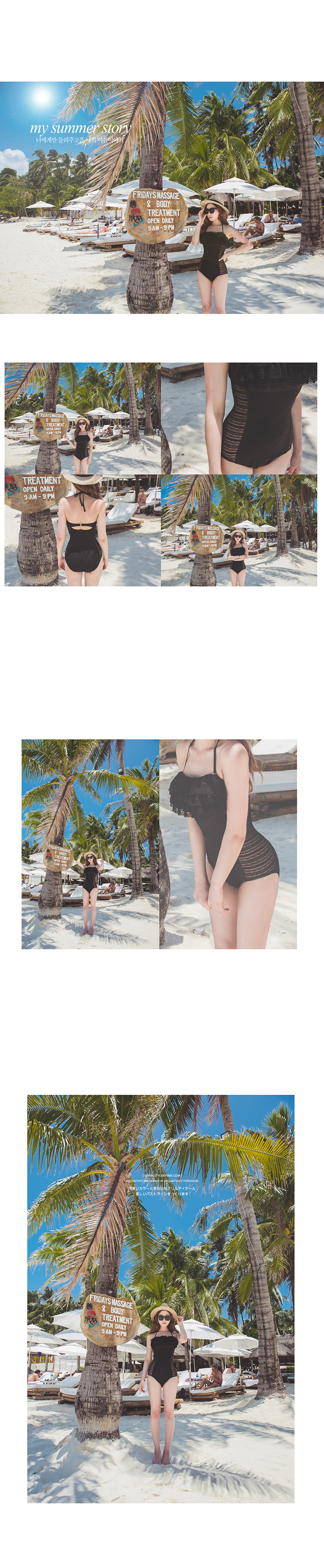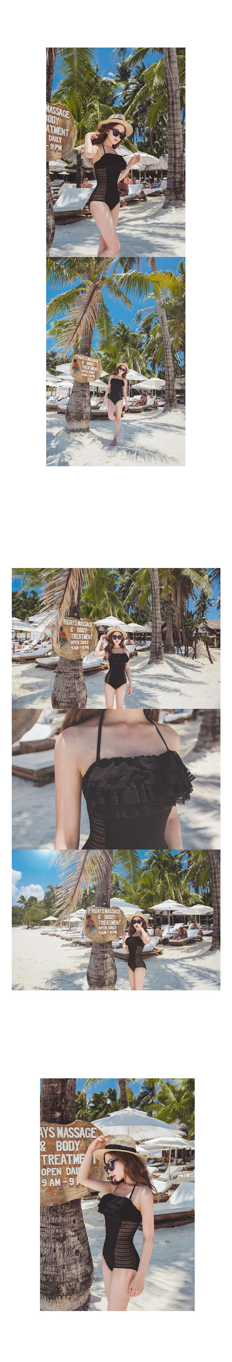韩国代购正品 stylebyyam拼接蕾丝花边连体式泳衣(2色)