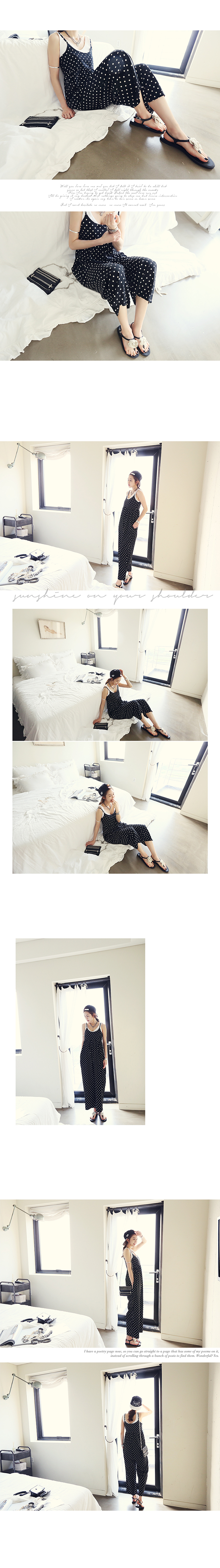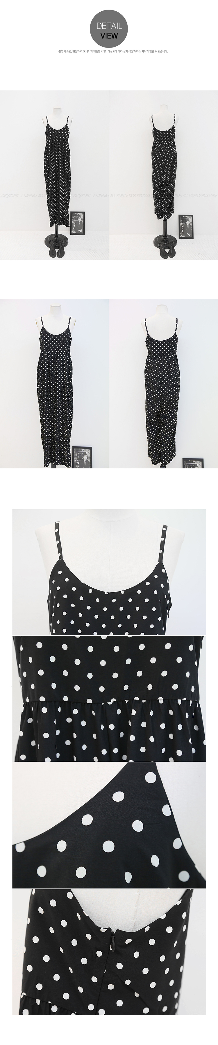 韩国女装代销 naning9复古波点高腰吊带连衣裤