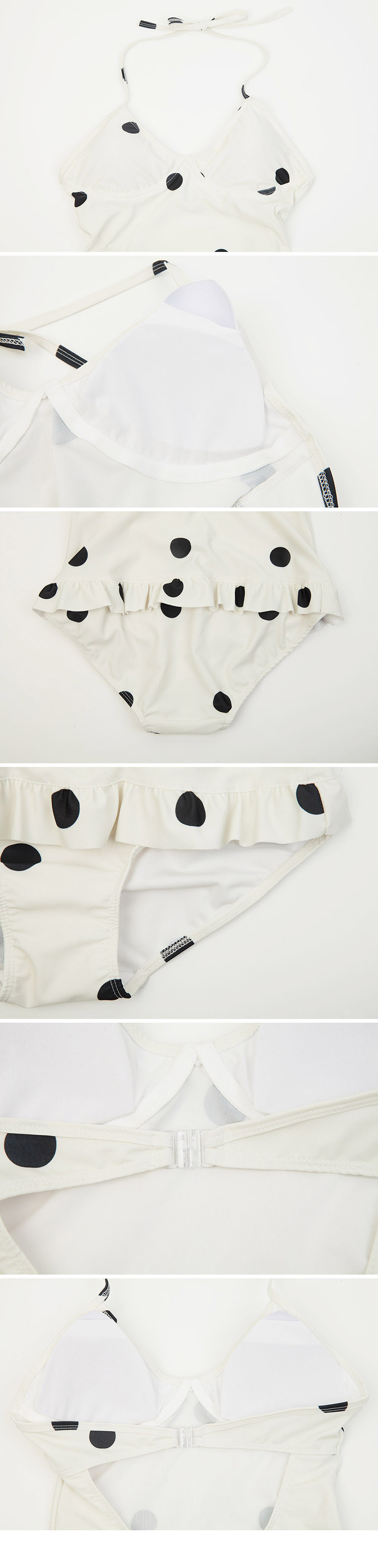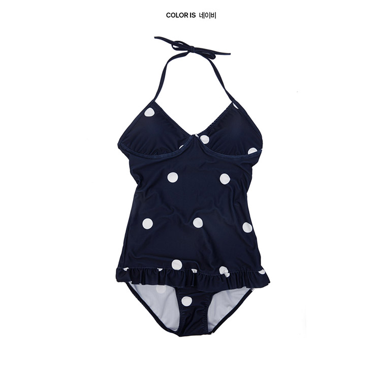 韩国服装 stylenanda复古波点露背木耳边裙式连体泳装(2色)