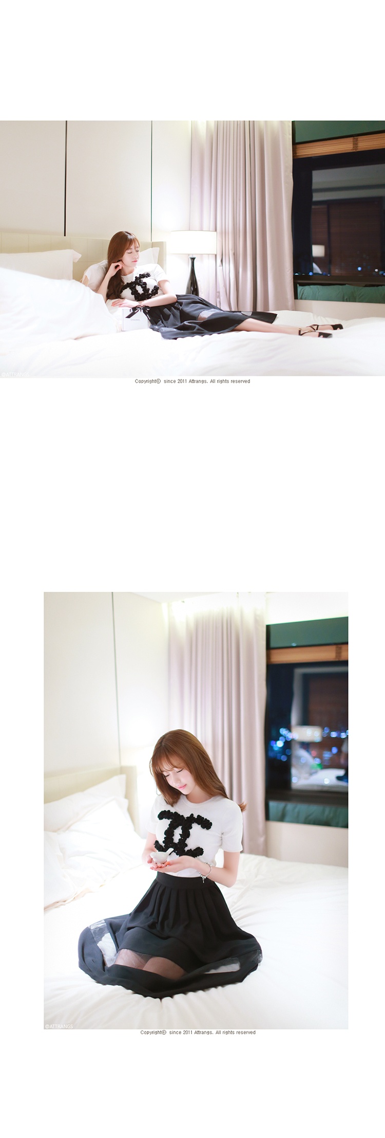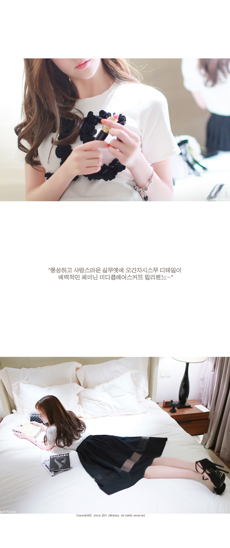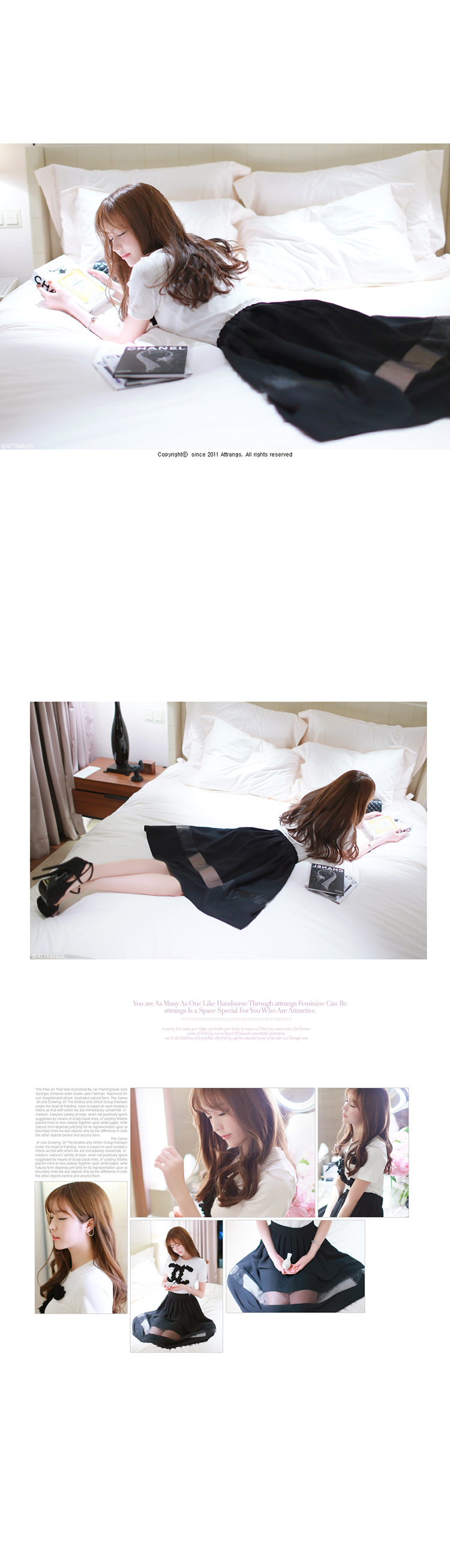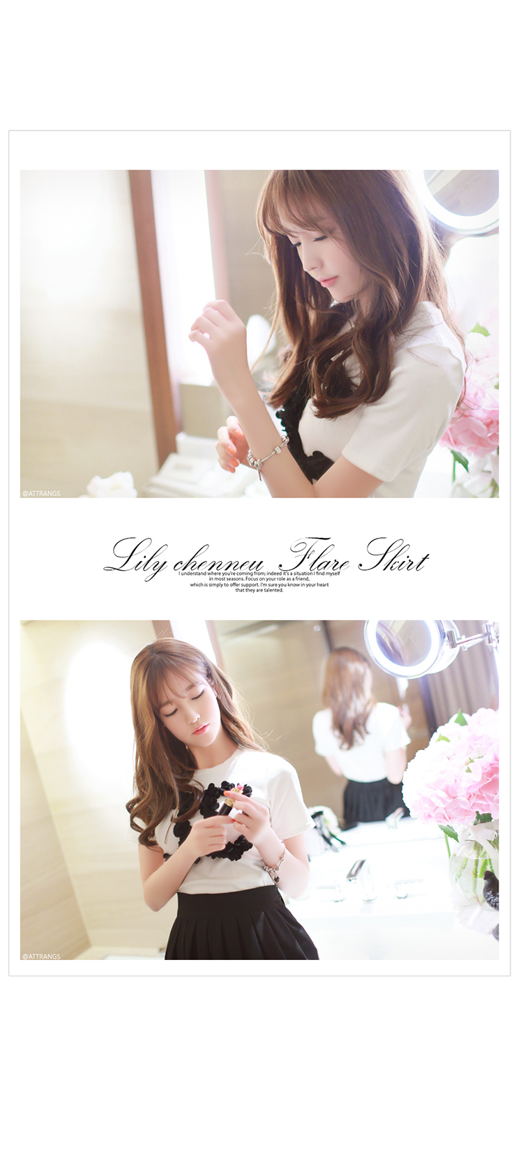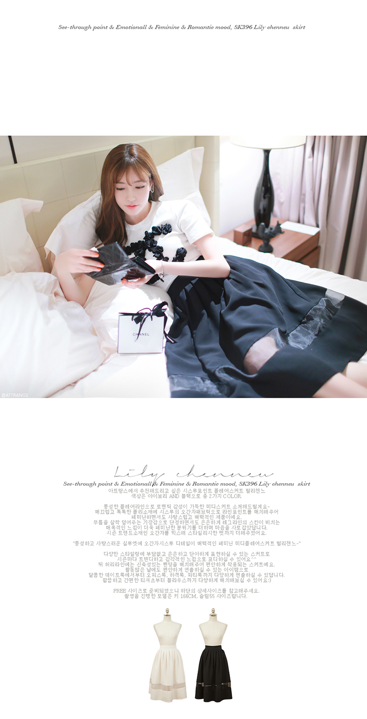 韩国女装春夏热款 attrangs浪漫拼接薄纱高腰半身中裙(2色)