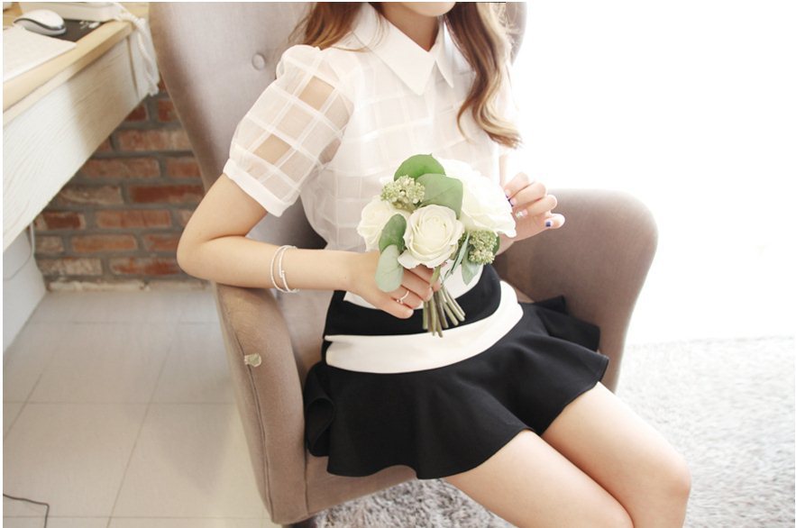 韩国服装网店代销 suvin气质花朵薄透衬衫(2色)