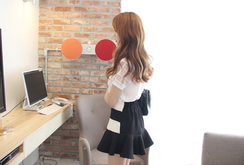 韩国服饰网 babirolen镂空花边荷叶领吊带露肩娃娃衬衫(2色)