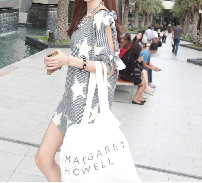 韩国女装批发 attystory蝴蝶结装饰星星宽松连衣裙