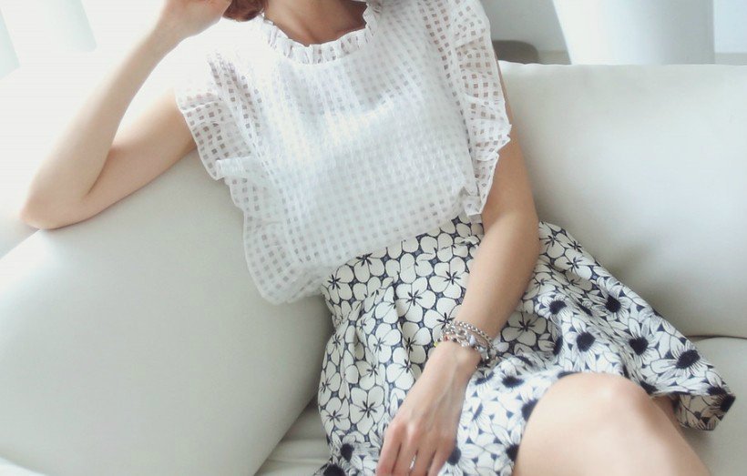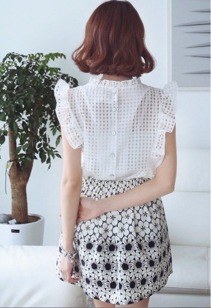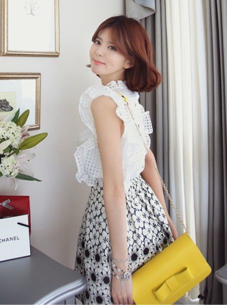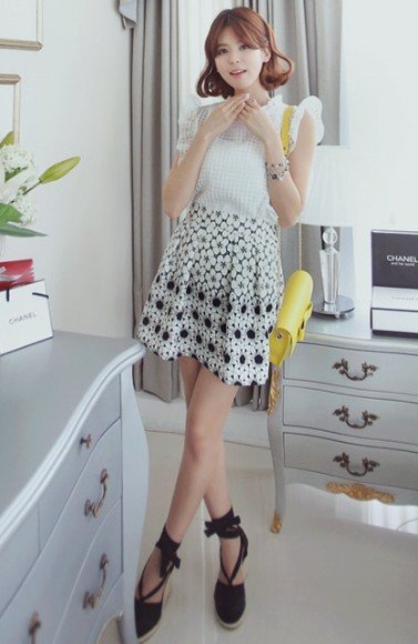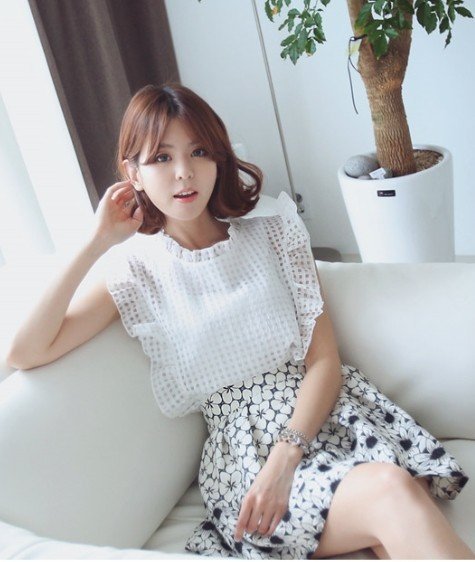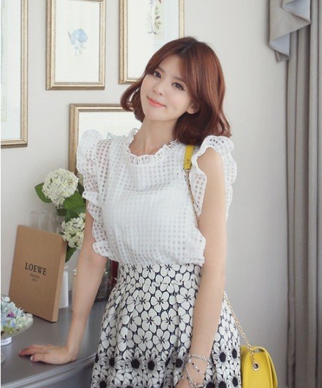 韩国女装代购 soo-a蕾丝花边套装(衬衫+高腰半身短裙)
