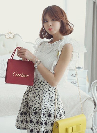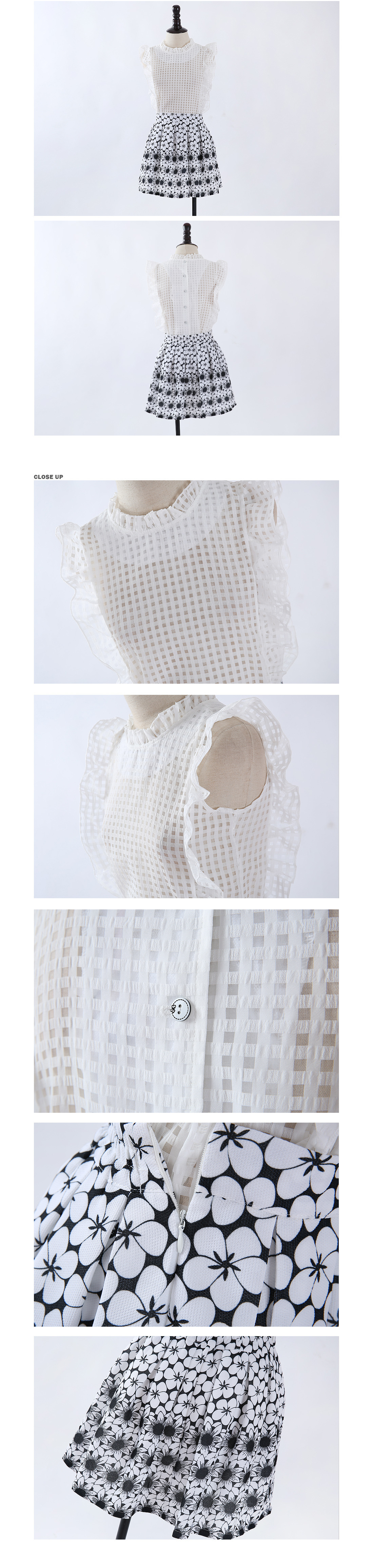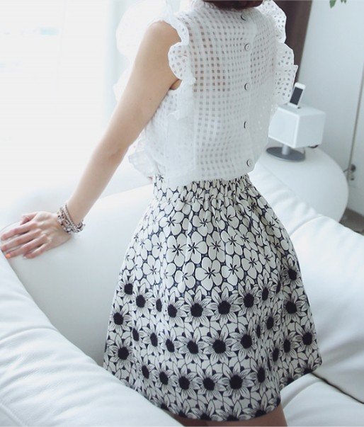 韩国女装网店代理 soo-a气质碎花飘逸套装(无袖衫+半身长裙)