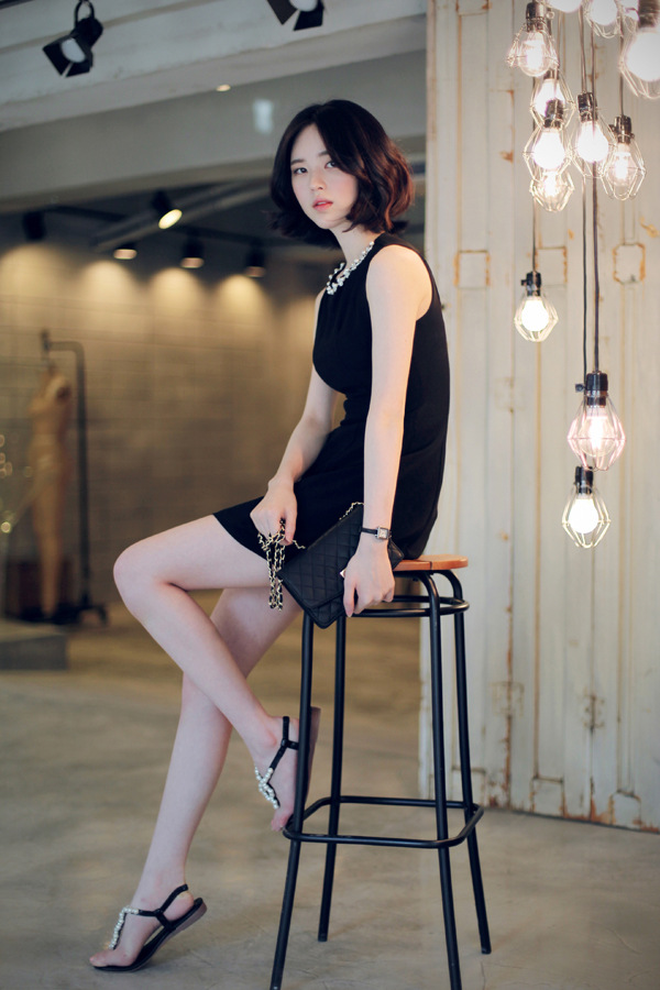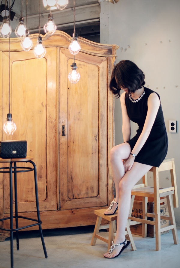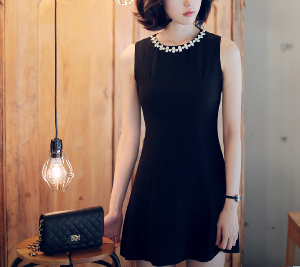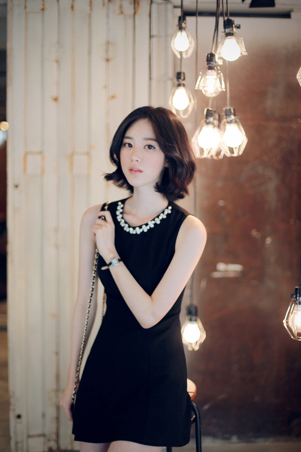 韩国女装春夏热款 milkcocoa气质钉珠修身连衣裙(小黑裙)