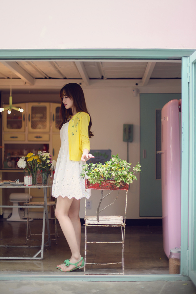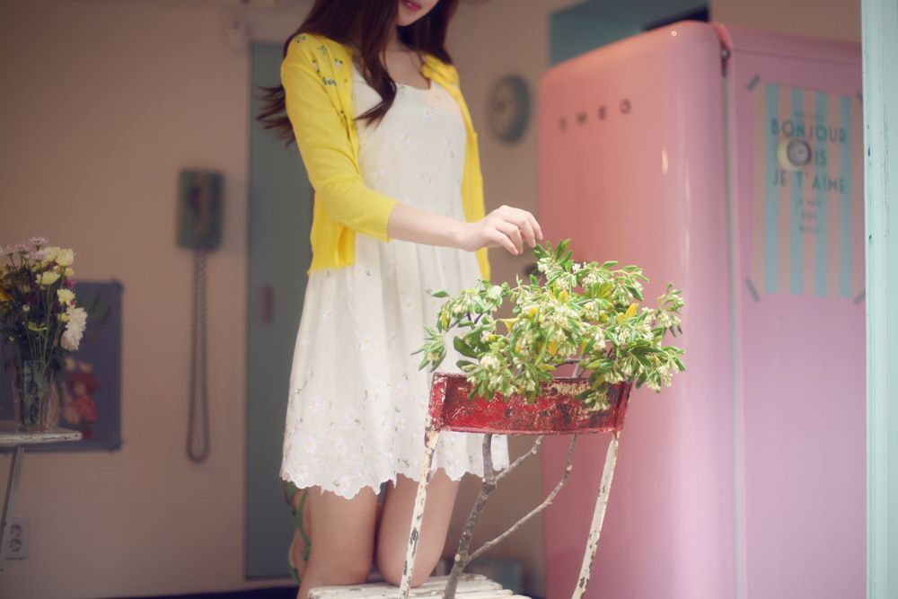 韩国代购正品 partysu浪漫花边高腰连衣裙(2色)