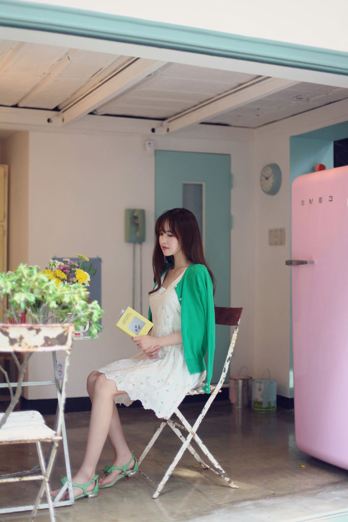 韩国网店代销 miamasvin花边大花高腰吊带娃娃连衣裙
