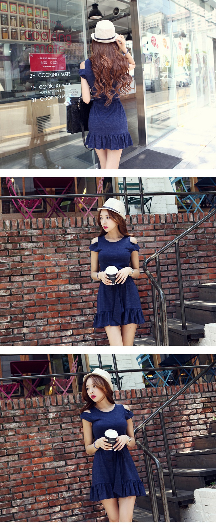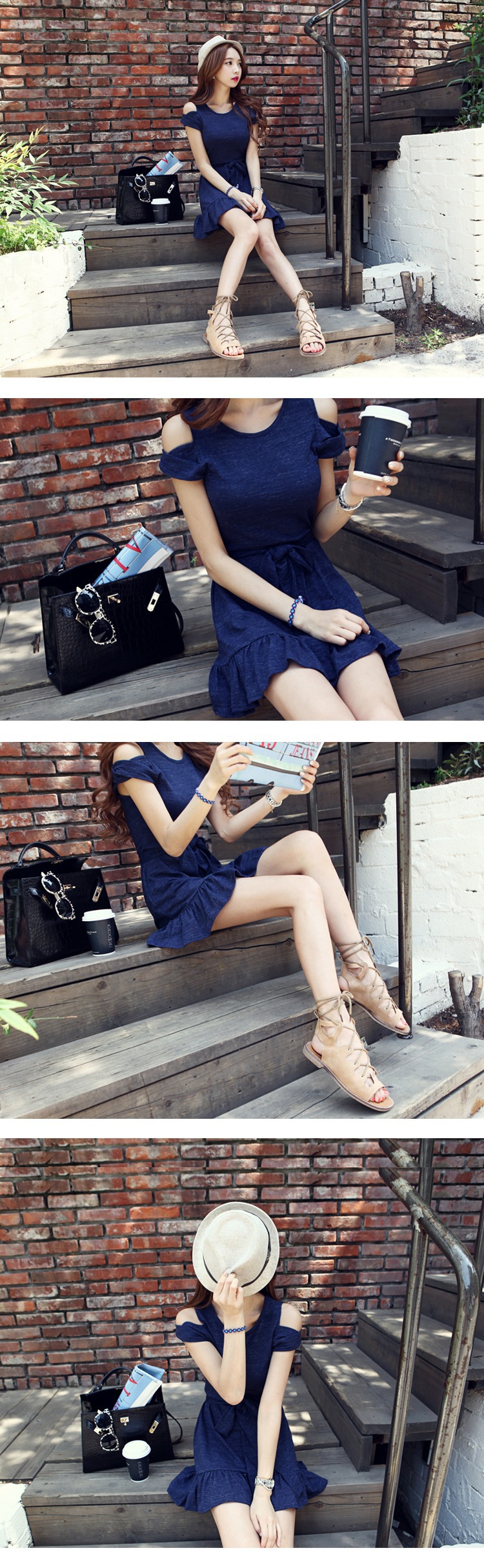 韩国服饰网店代销 dabagirl露肩蝴蝶结修身连衣裙