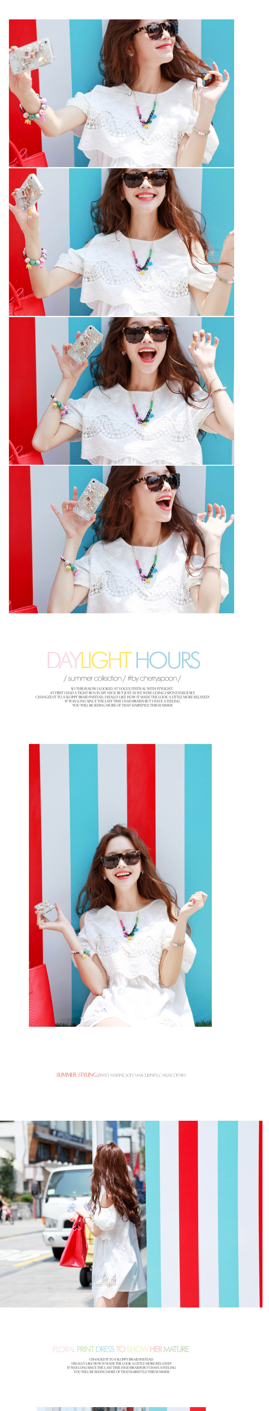 韩国网店代销 cherry-spoon白色露肩勾花镂空连衣裙