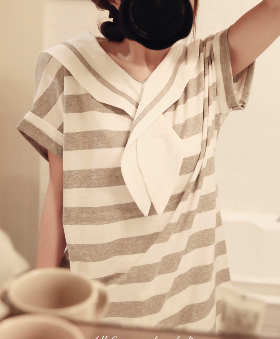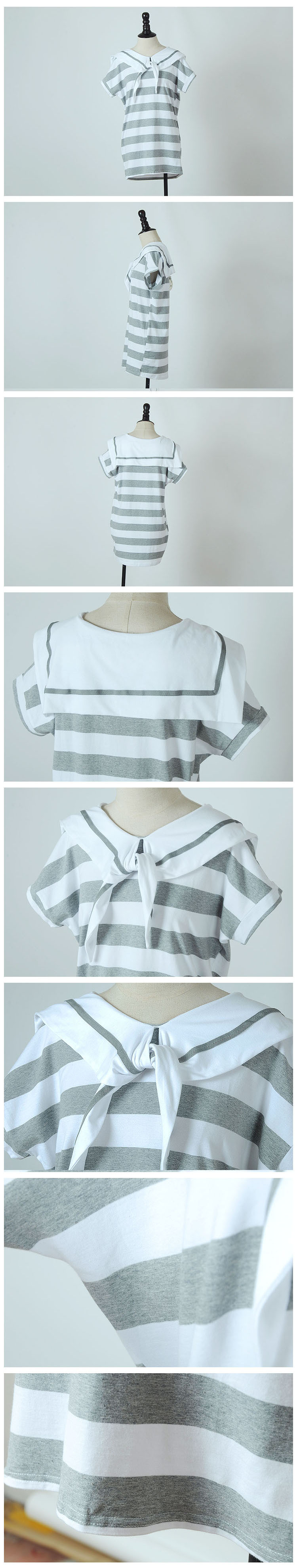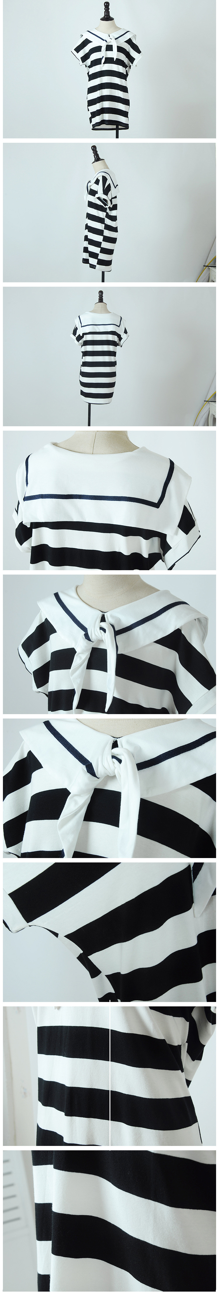 韩国女装春夏爆款 cherry-spoon海军领粗条纹连衣裙(2色)