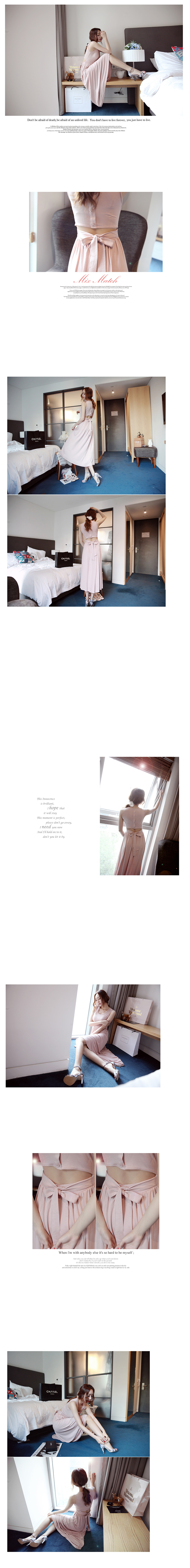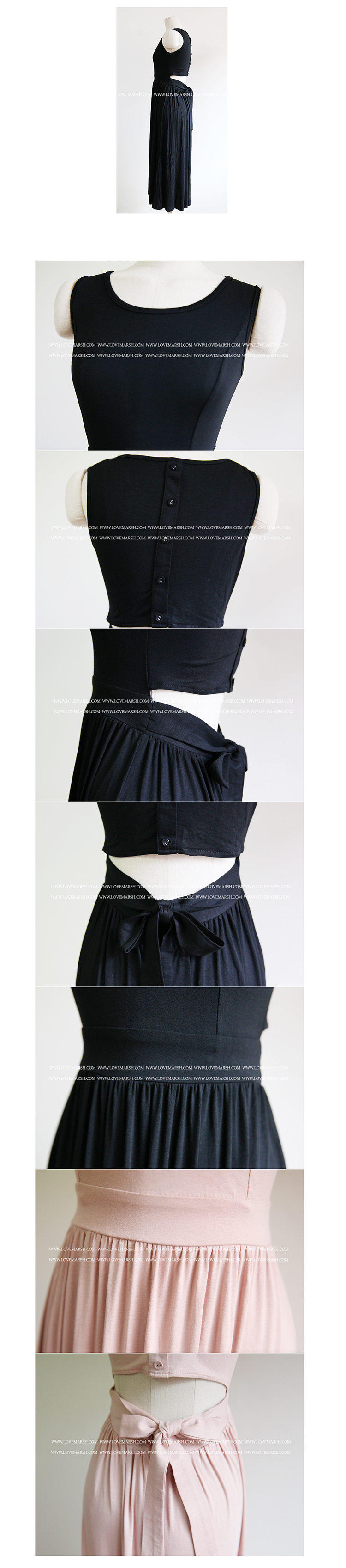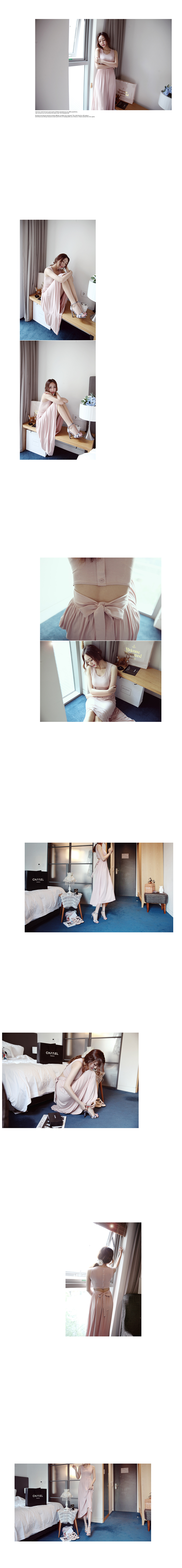 韩国女装代销 lovemarsh气质纯色蝴蝶结露背连衣长裙(2色)