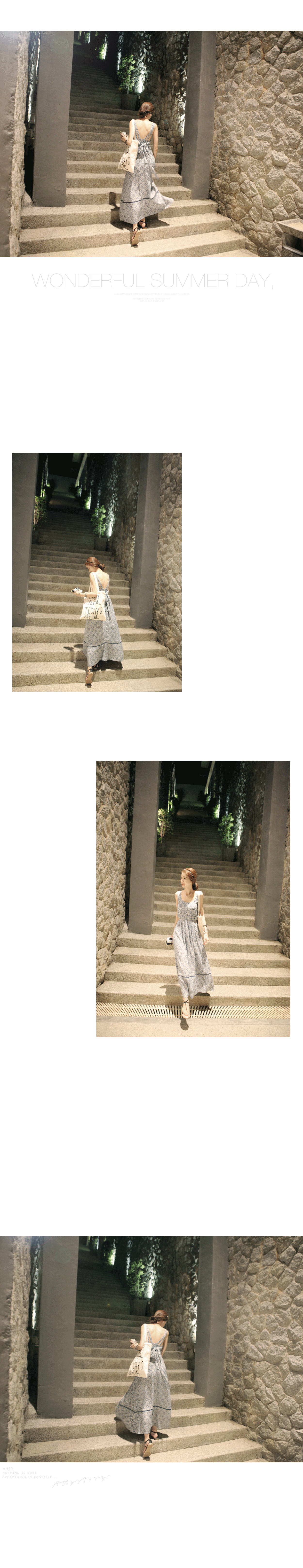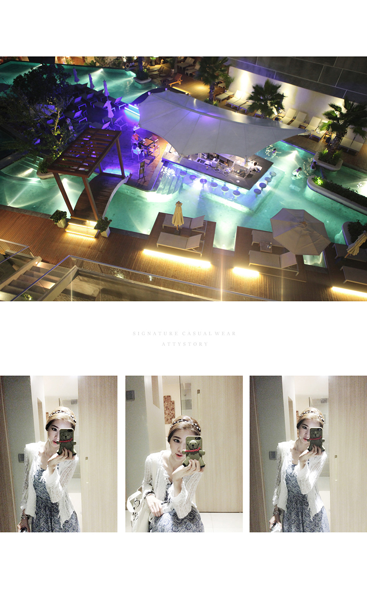 韩国服饰网 attystory性感深V挂脖吊带海滩度假连衣长裙