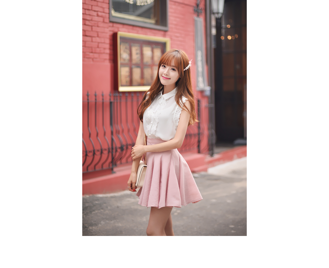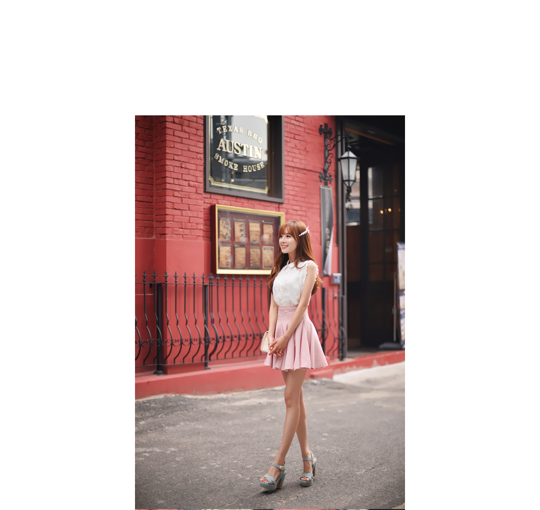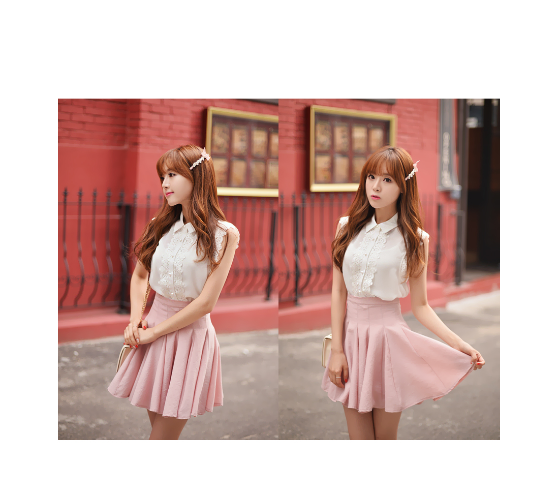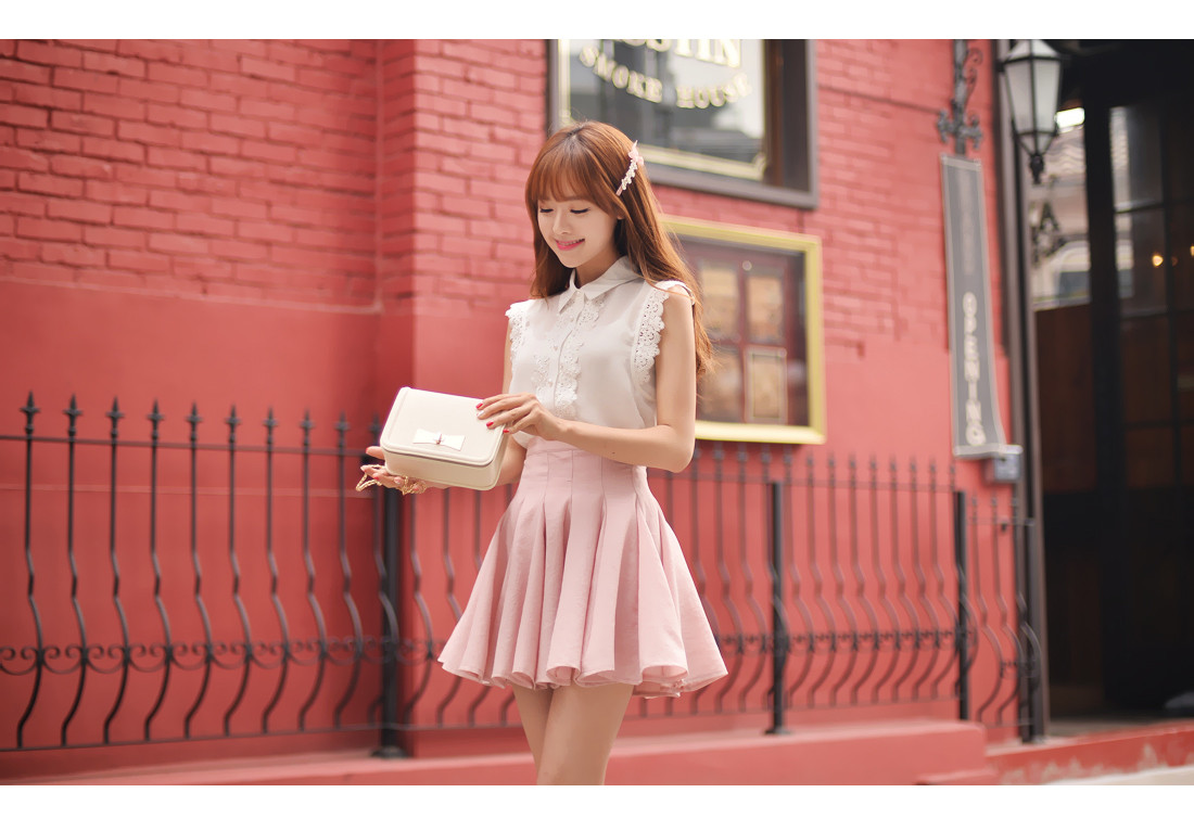 韩国服装代理 darkvictory气质款系带假两件开叉短裙(2色)