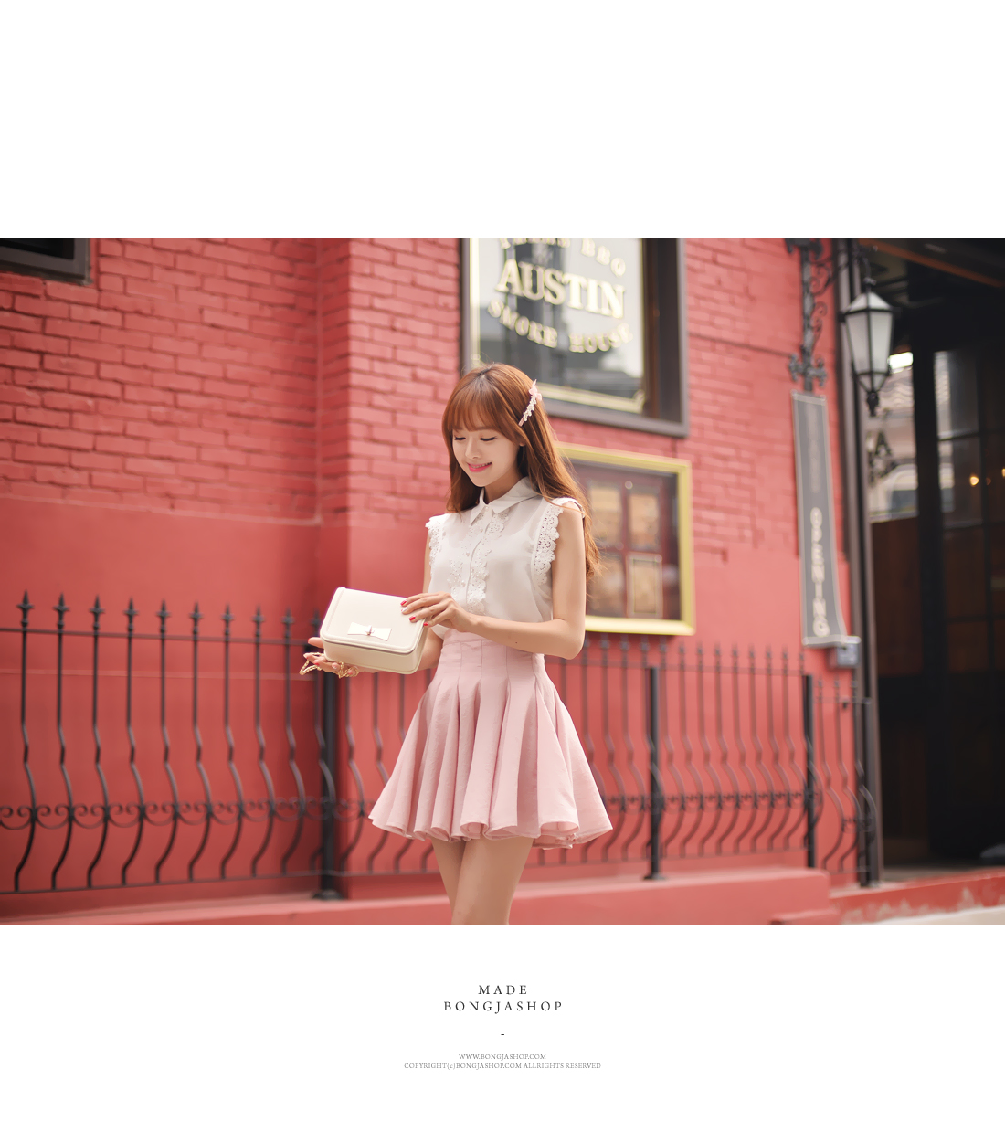 韩国女装春夏爆款 bongjashop镂空圆点高腰包臀短裙(2色)