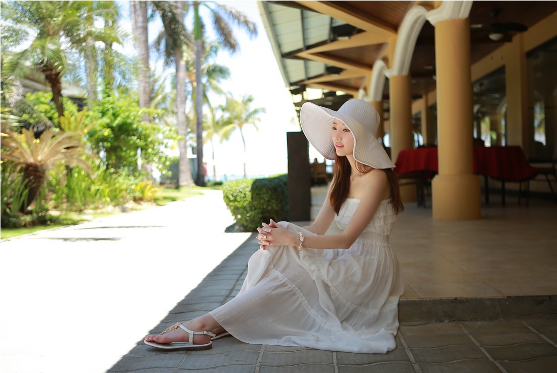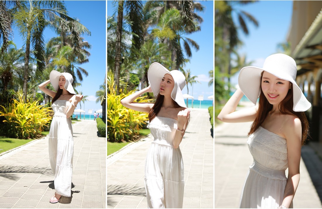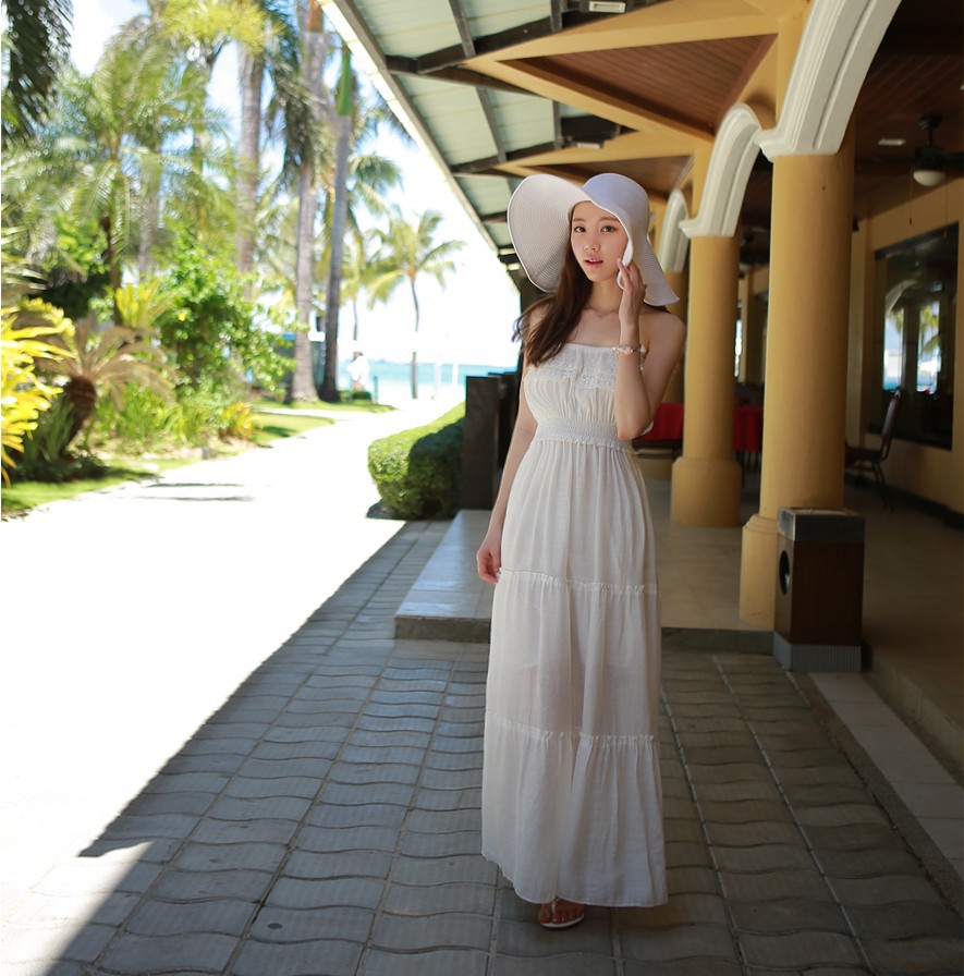 韩国女装网店代销 myfiona超仙蕾丝花边裹胸连衣长裙