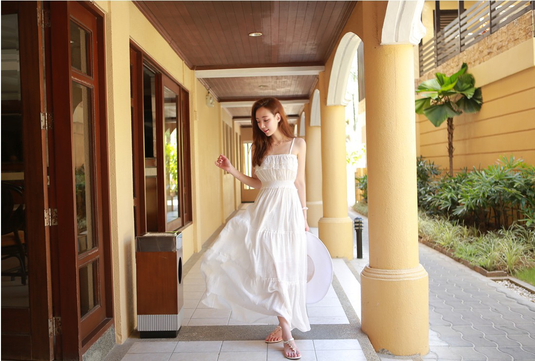 韩国服饰网 attystory性感深V挂脖吊带海滩度假连衣长裙