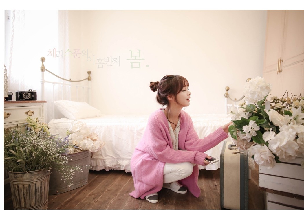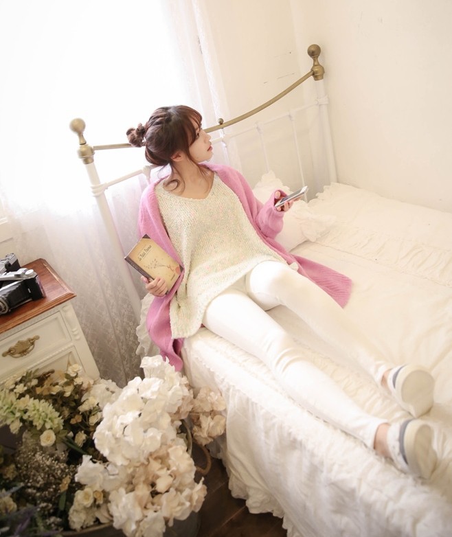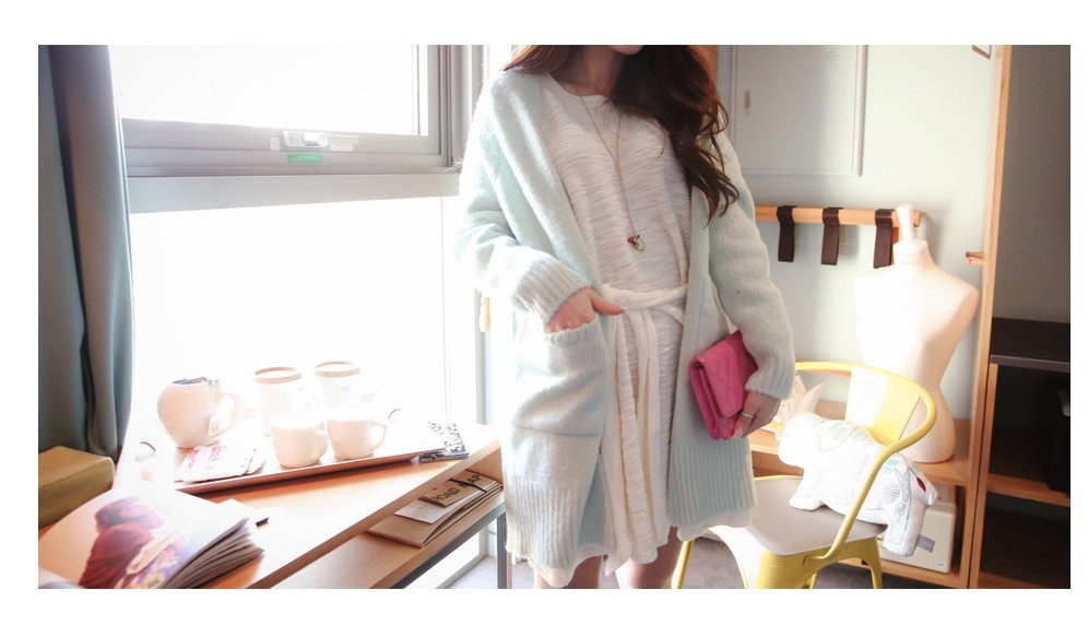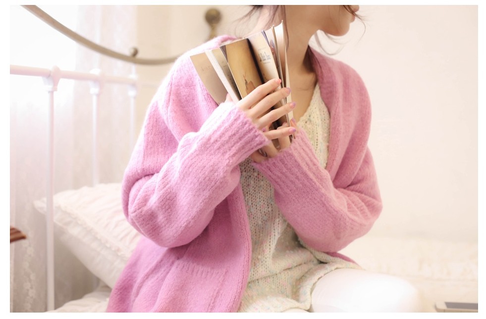韩国女装2014新款 cherry-spoon马卡龙色慵懒针织开衫(2色)