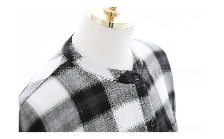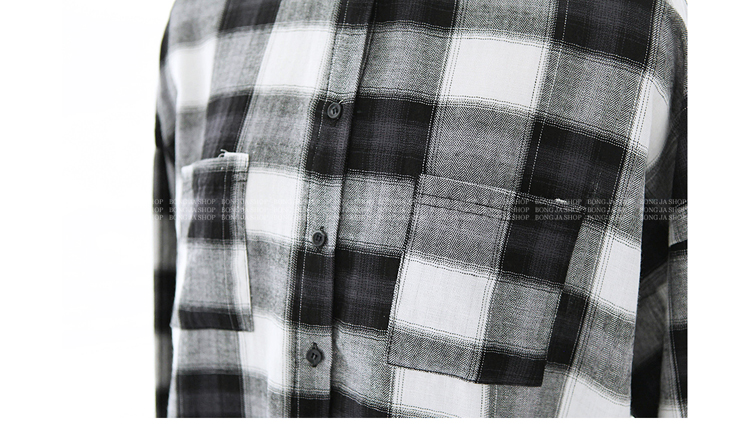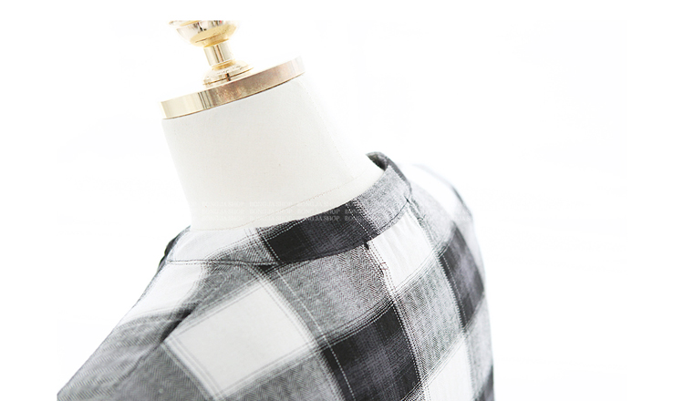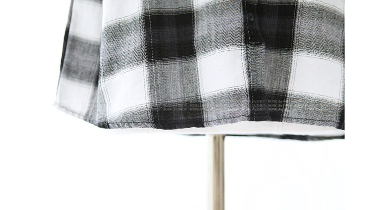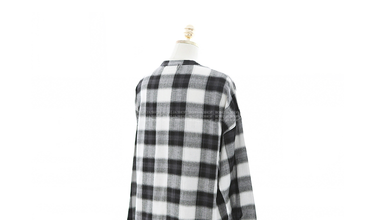 韩国女装代销 naning9街拍经典黑白细格纹长款衬衫