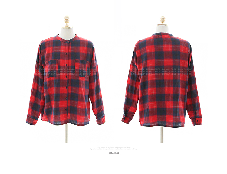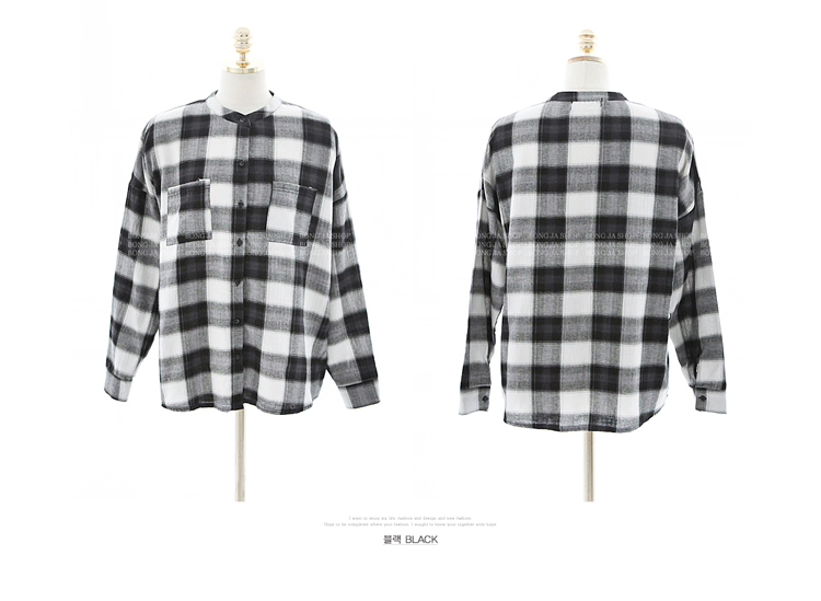 韩国服饰批发 bongjashop人气款百搭格纹衬衫(2色)