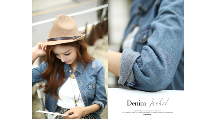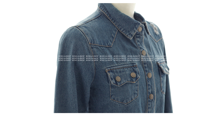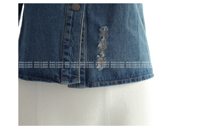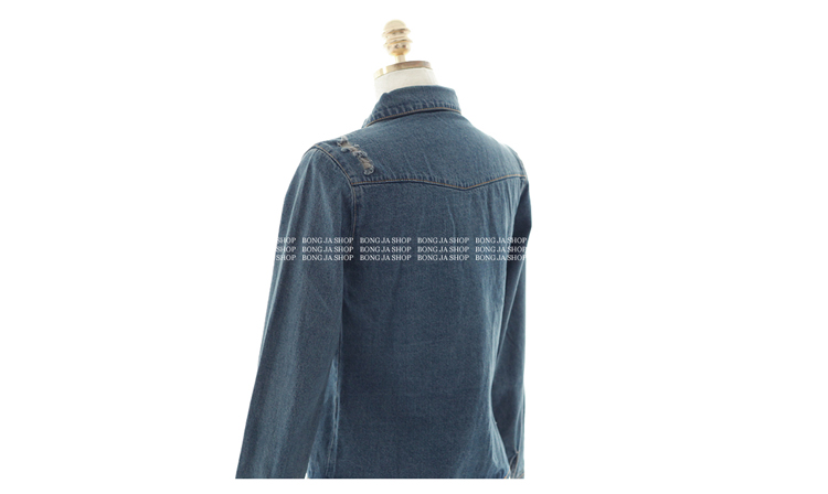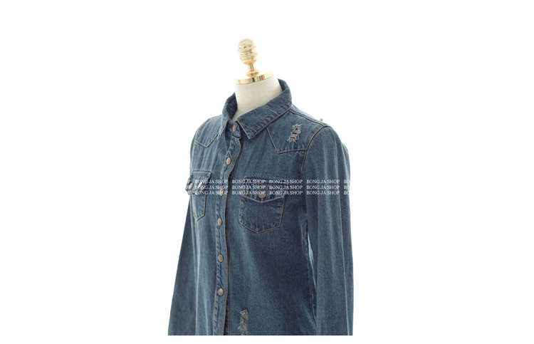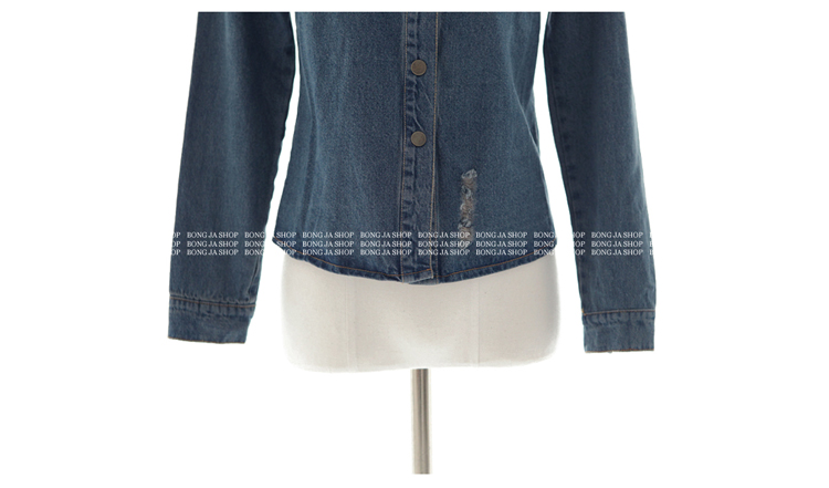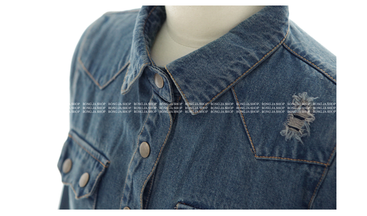 韩国女装代理 bongjashop百搭经典磨破牛仔衬衫