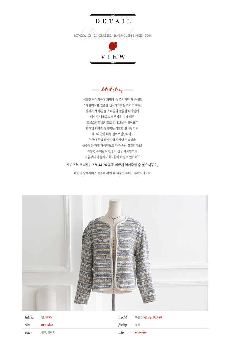 韩国女装代销 babirolen民俗风开衫短外套(2色)