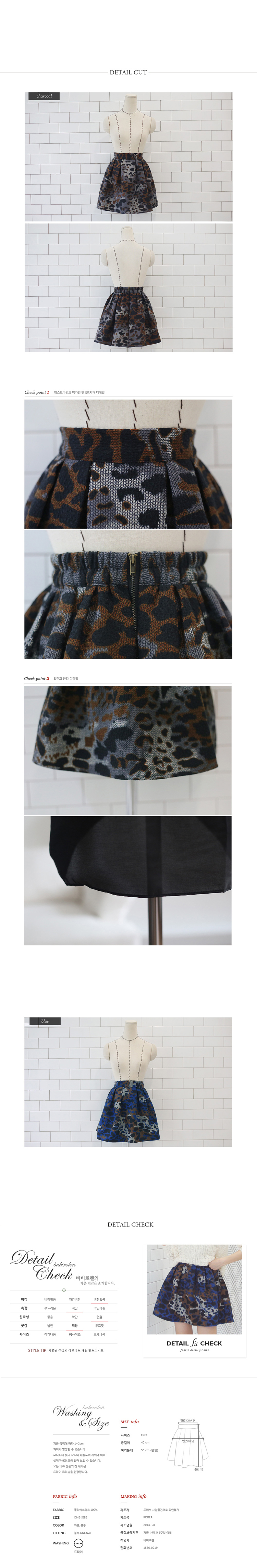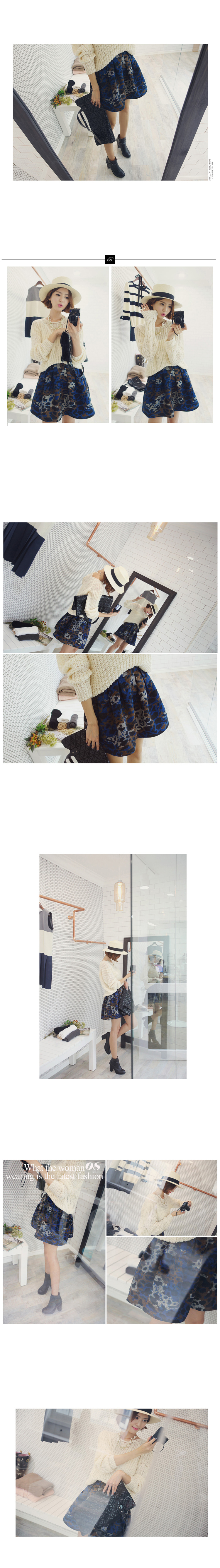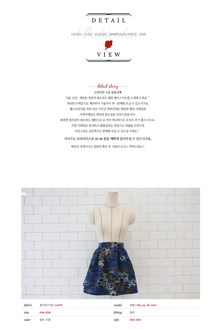 韩国女装网店代理 babirolen撞色豹纹高腰半身A字短裙(2色)