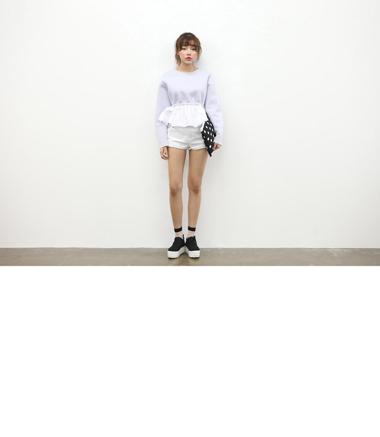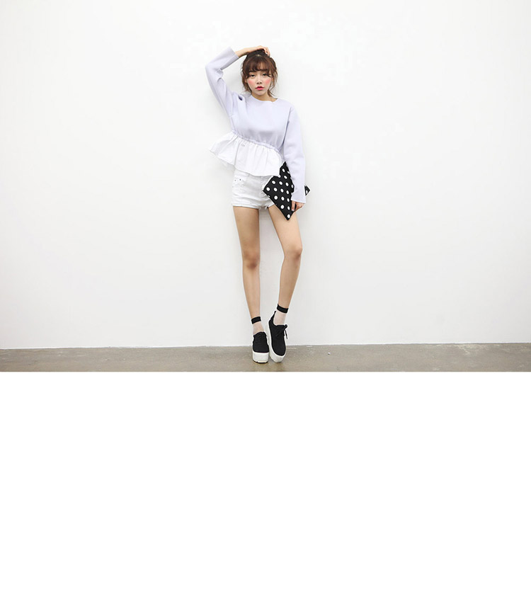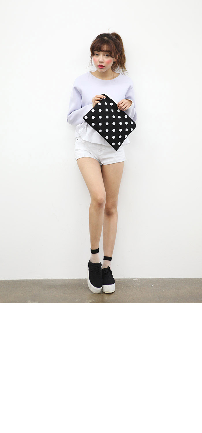 韩国代购批发 水玉波点裙摆式假两件卫衣(2色)