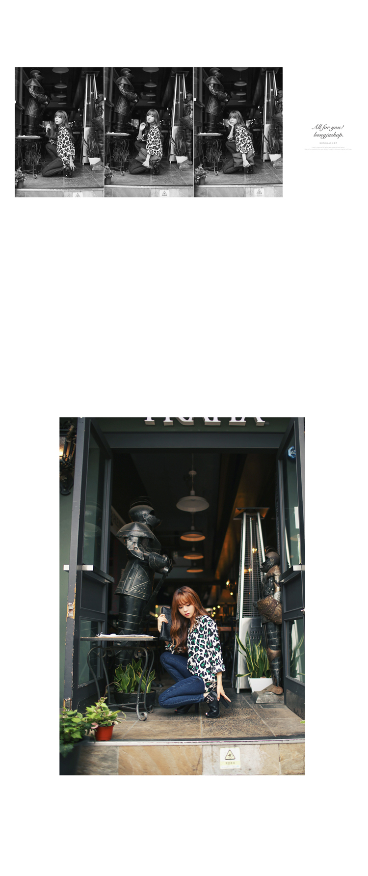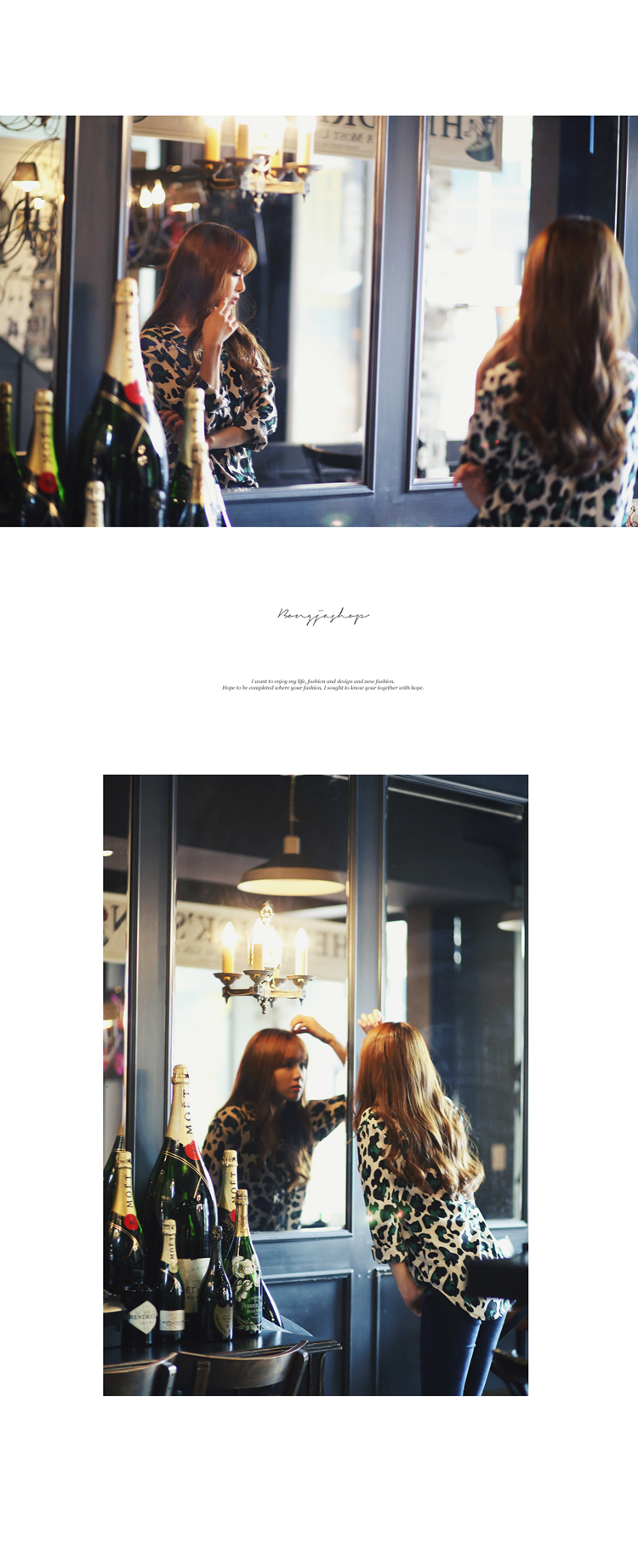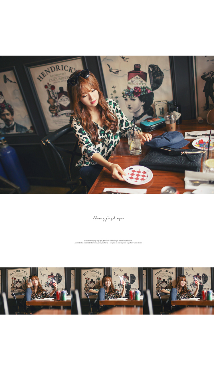 韩国服饰代购 bongjashop气质豹纹衬衫(2色)