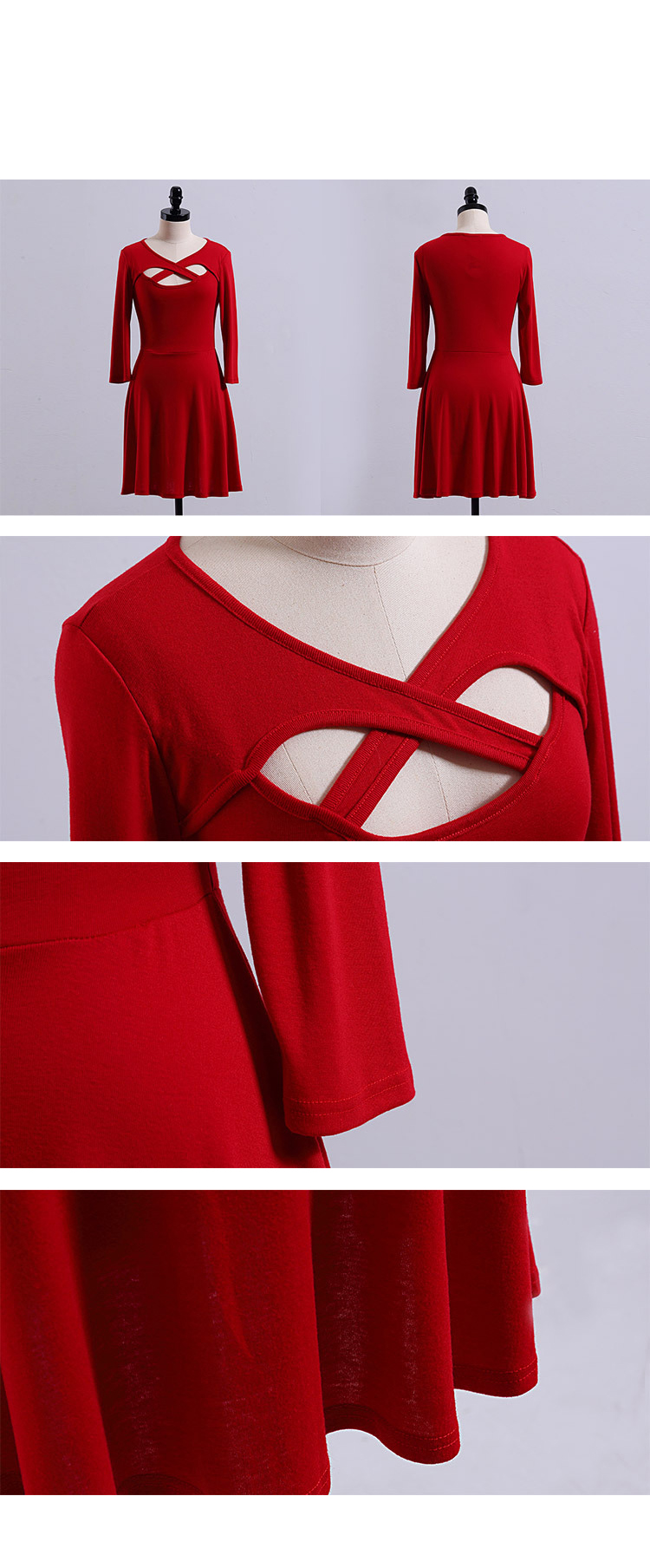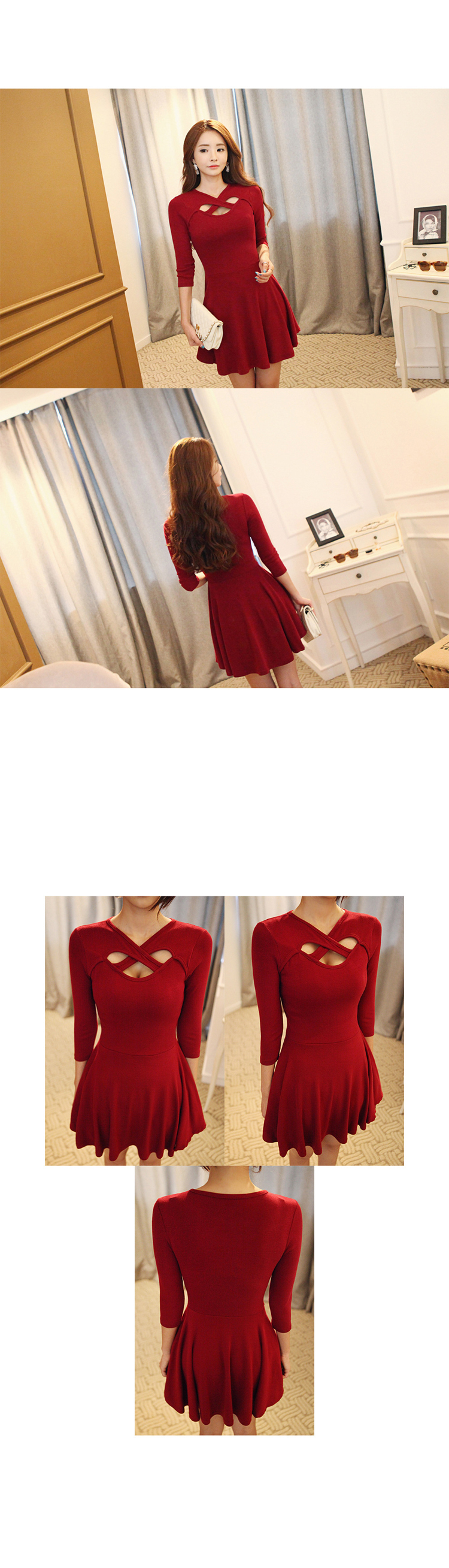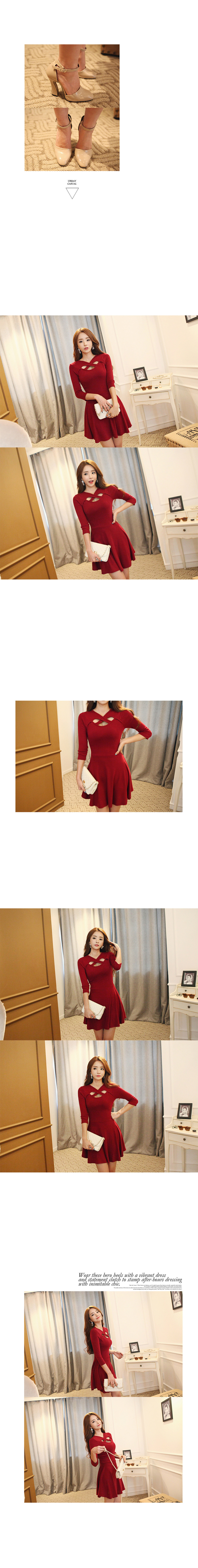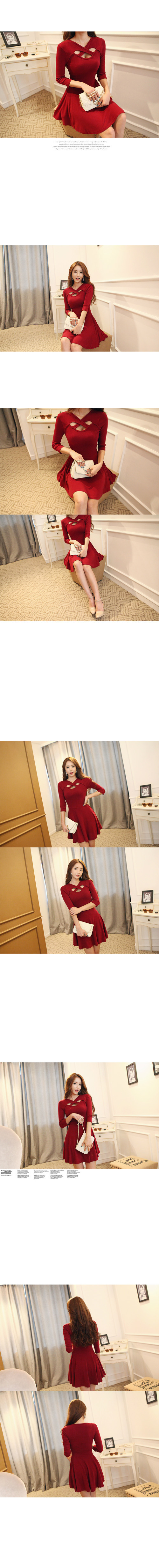 韩国服饰秋冬热款 性感交叉镂空修身连衣裙